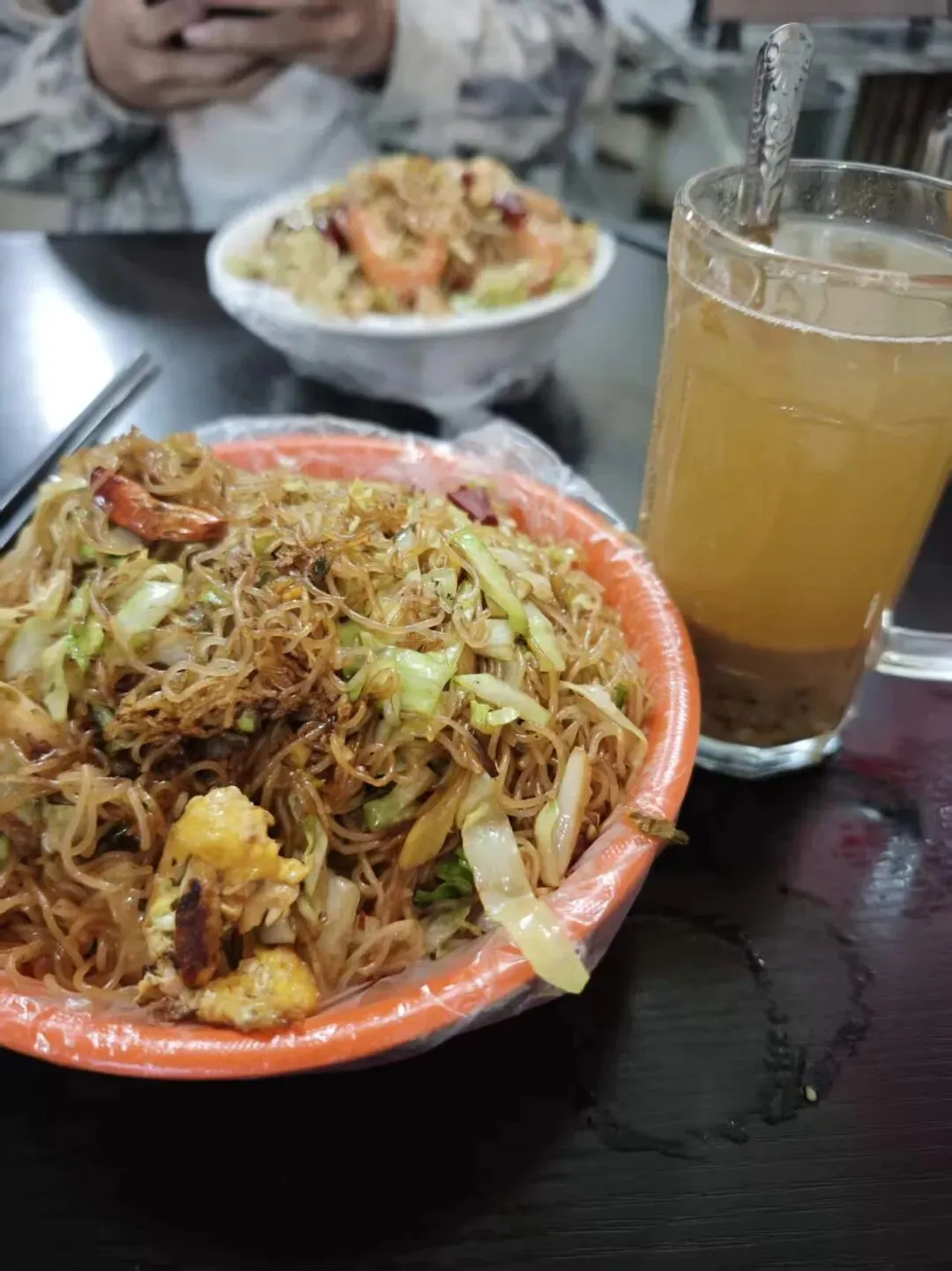 炒米线吃得火热,配一碗绿豆汤正好。3块钱,解腻又舒服,是老客们的标配吃法。