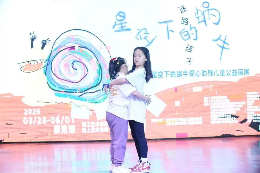 琴声悠扬,互动温情。小志愿者与“蜗牛”宝贝手牵手,并送上大大的拥抱。现场还有来自社会各界爱心人士捐赠了他们精心创作的艺术作品。在义卖摊位前,众多观看者与爱心人士纷纷购买并收藏“蜗牛”宝贝们的创意手作,购买后全部善款捐赠给参展的孩子家庭。孩子们新奇的创意、巧妙的构思、率性的表达、质朴的情感,充分地体现在展出的艺术品中。正如展览《前言》所说:他们是星星的孩子,有着澄澈却封闭的内心,活在独属于自己的宇宙里,不善言语,不懂表达,却藏着不为人知的温柔与纯粹。他们像遥远的星,安静、沉默,用自己的频率闪烁。