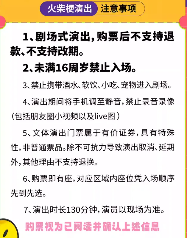 ★演出票为特殊商品,如非不可抗力因素场次取消或延期,售出不退不换,敬请理解!