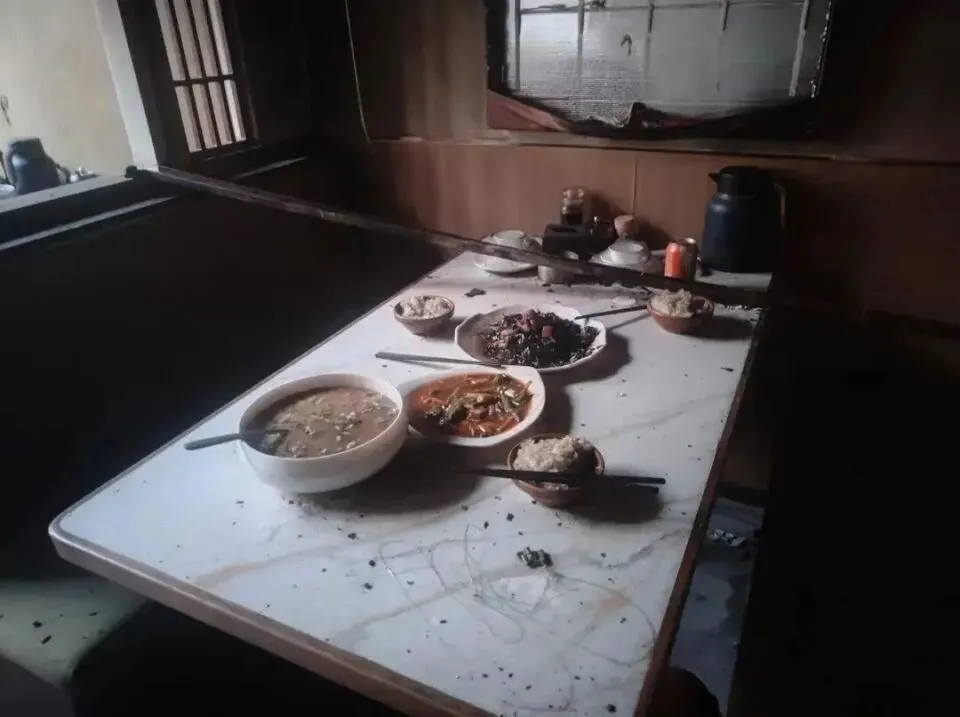 1、最先起火的地方以及火的蔓延。前面分析过了,大概率是大龙烧烤店的厨房,然后起火后引燃了抽排油烟管道,火向上窜了,在烧烤店内扑救其实意义不大。因为这个火是向上窜的,所以并没有蔓延到便利店和旁边的川菜馆,记者发现的这三家店内并没有过火,应该和这种情形有关;