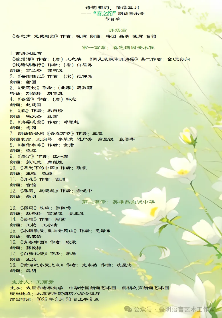 云程发轫,风禾尽起。在新的暖阳的照亮下,《中华诗园》联盟了“中国城市专家网”、“仓央嘉措诗社”两大平台以及中华诗园朗诵艺术团、中国城市专家网朗诵艺术团 、仓央嘉措朗诵艺术团三大平台。