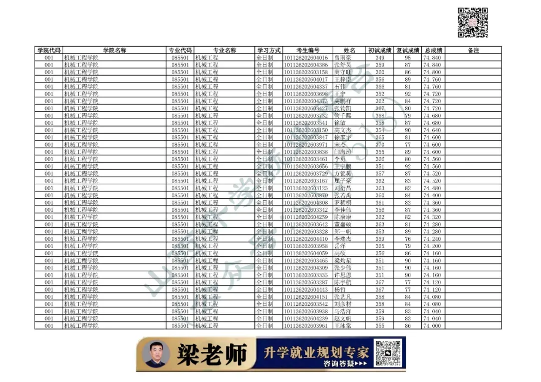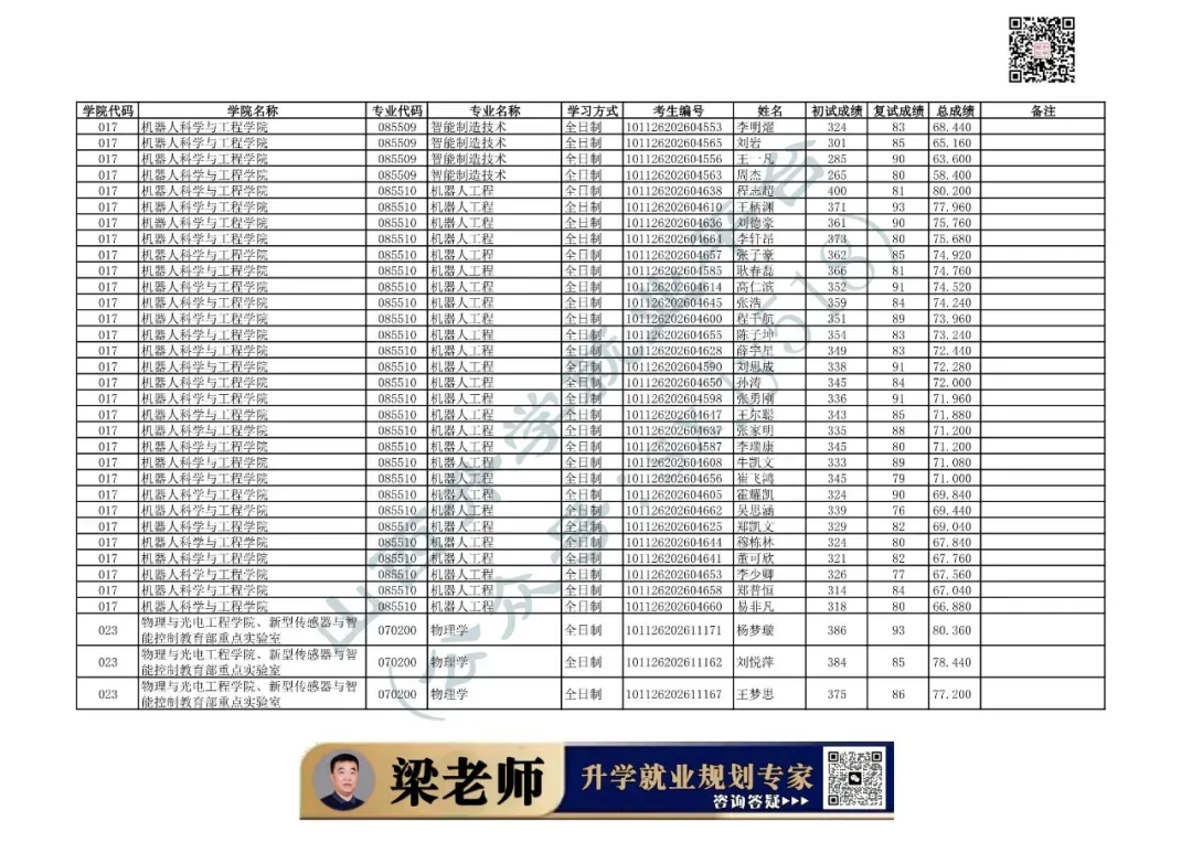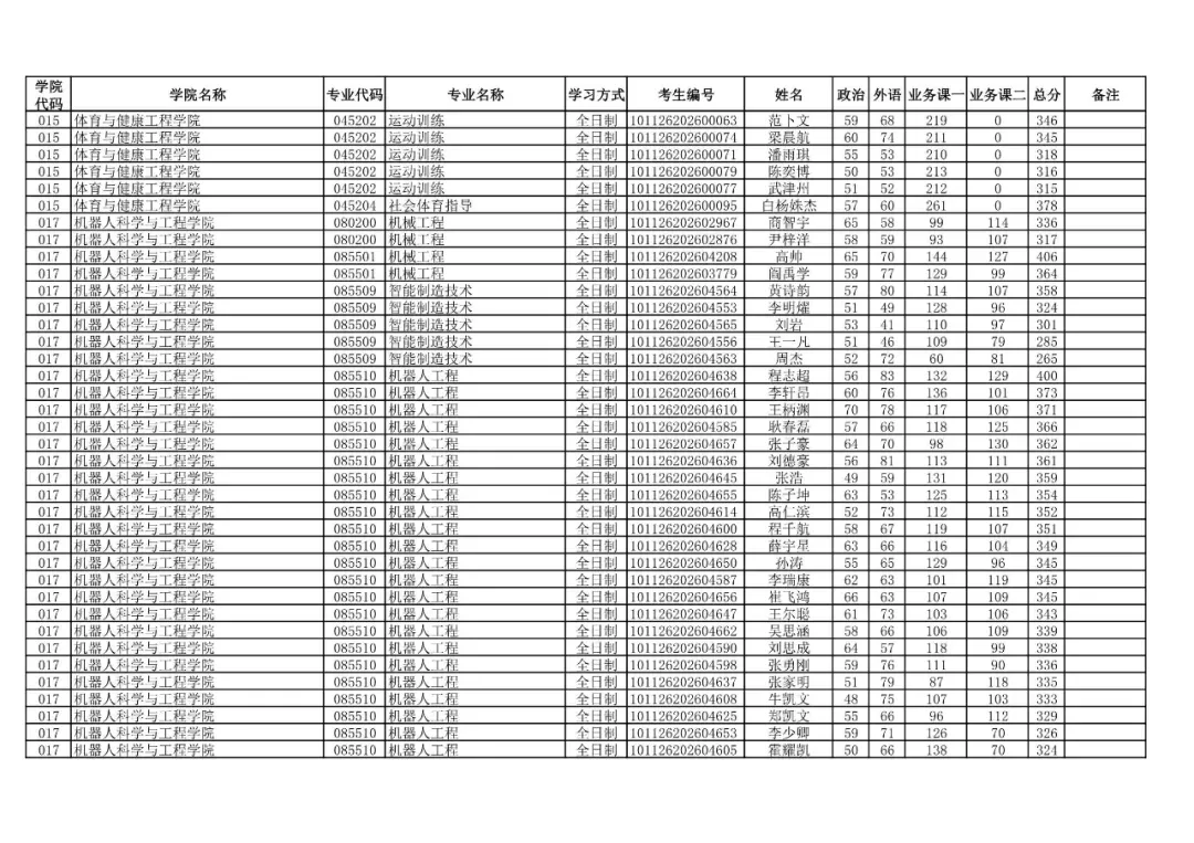 017 | 机器人科学与工程学院 | 080200 | 机械工程 | 全日制 | 101126202699906 | 常青山 |