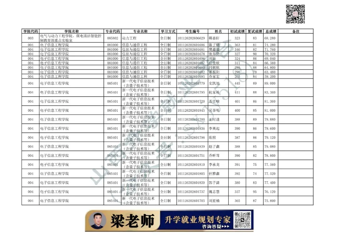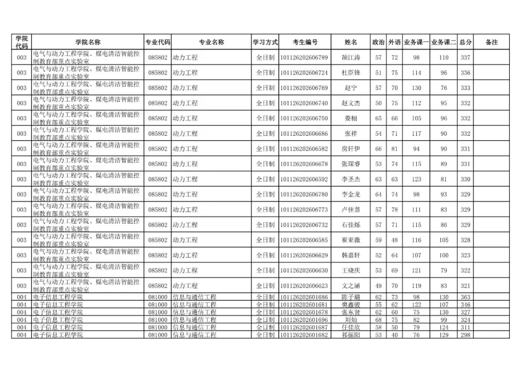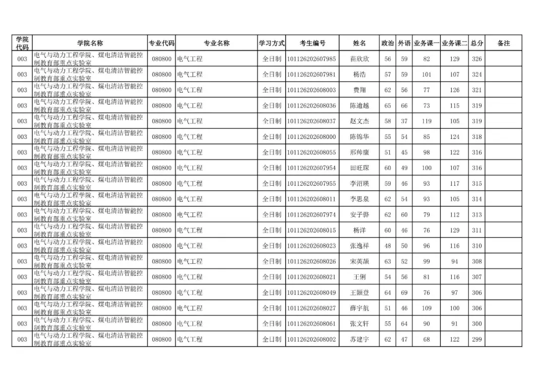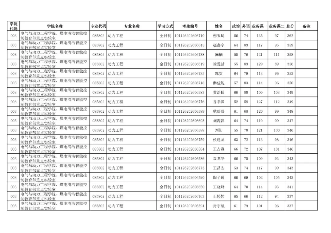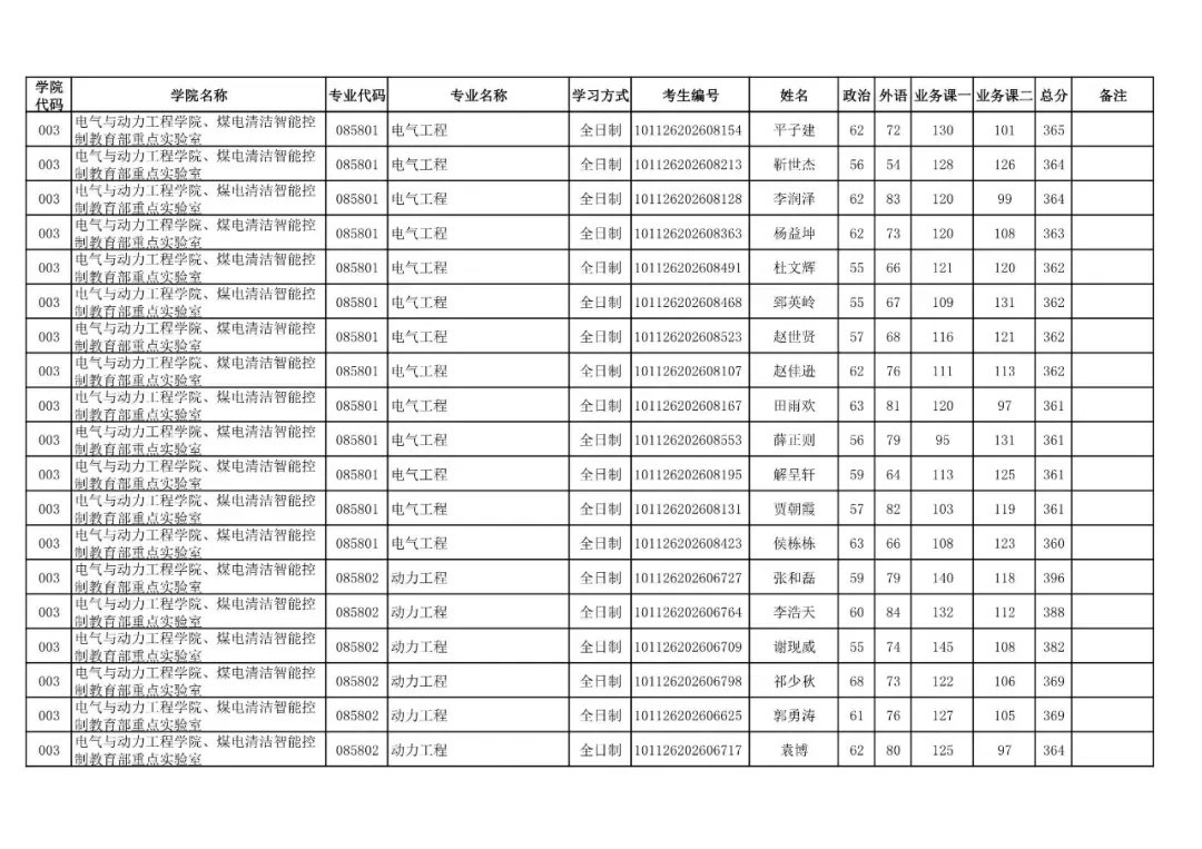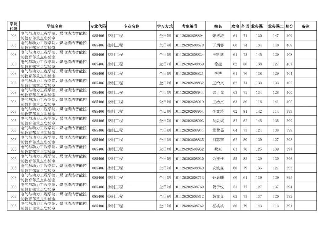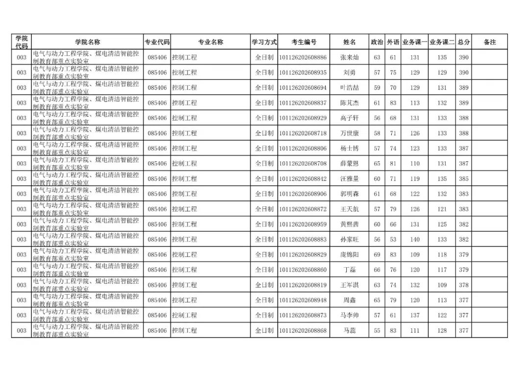 003 | 电气与动力工程学院、煤电清洁智能控制教育部重点实验室 | 085406 | 控制工程 | 全日制 | 101126202699902 | 贾焱峰 |
