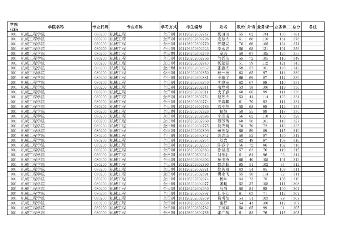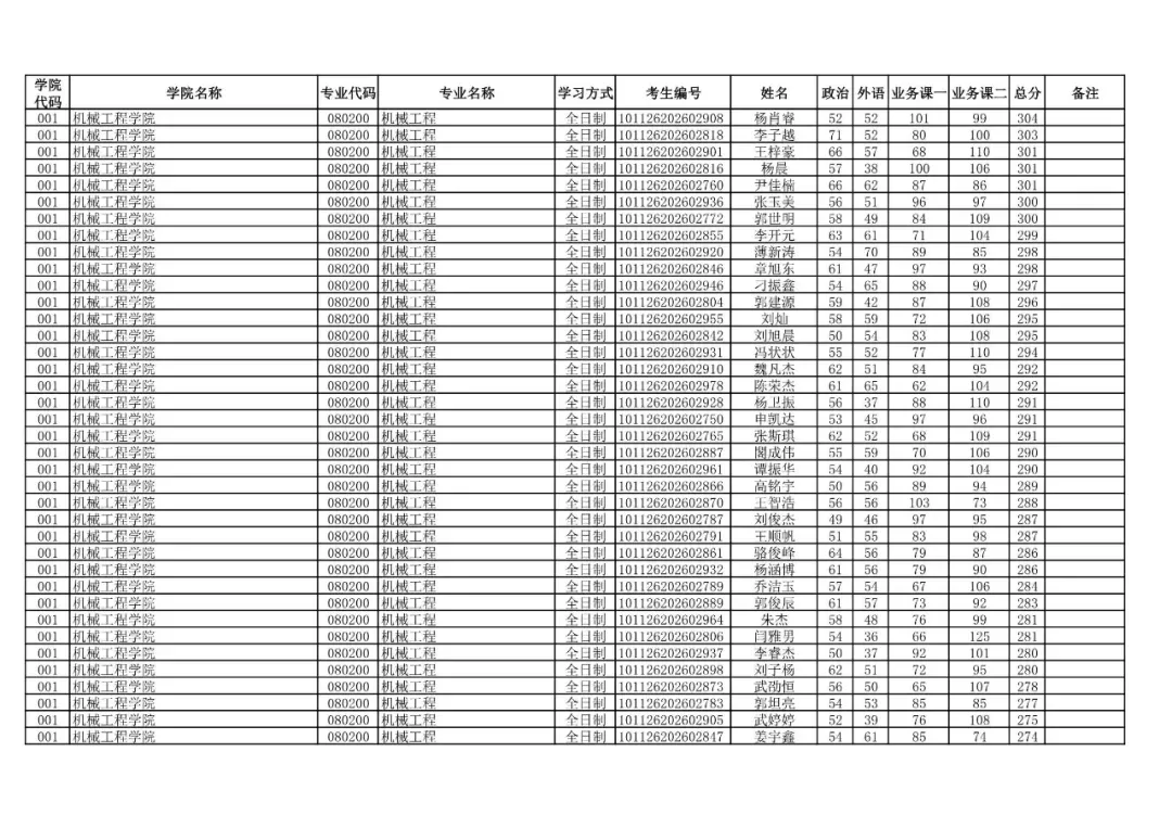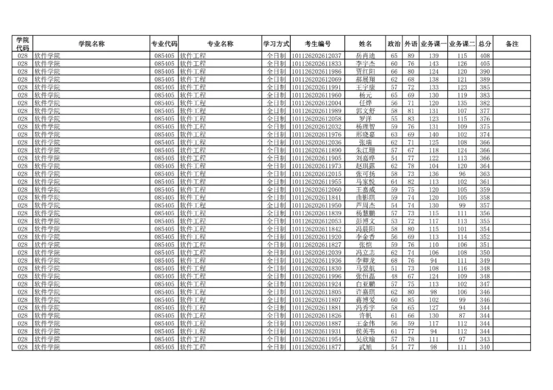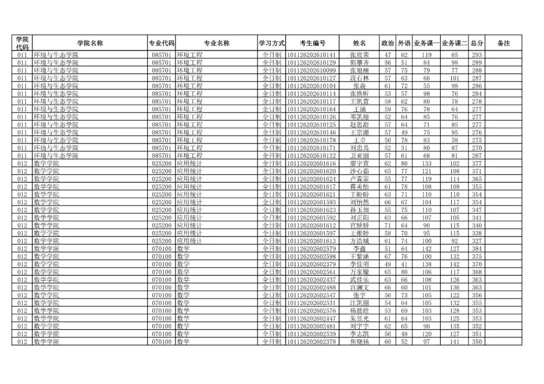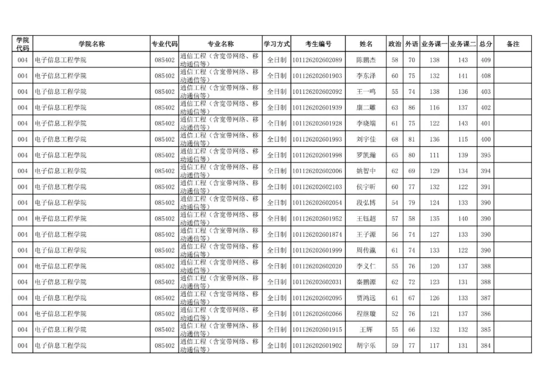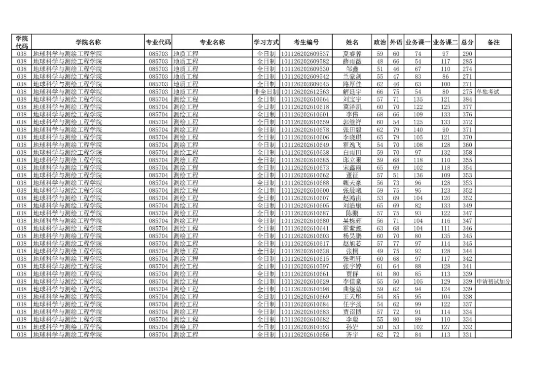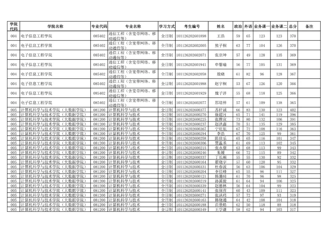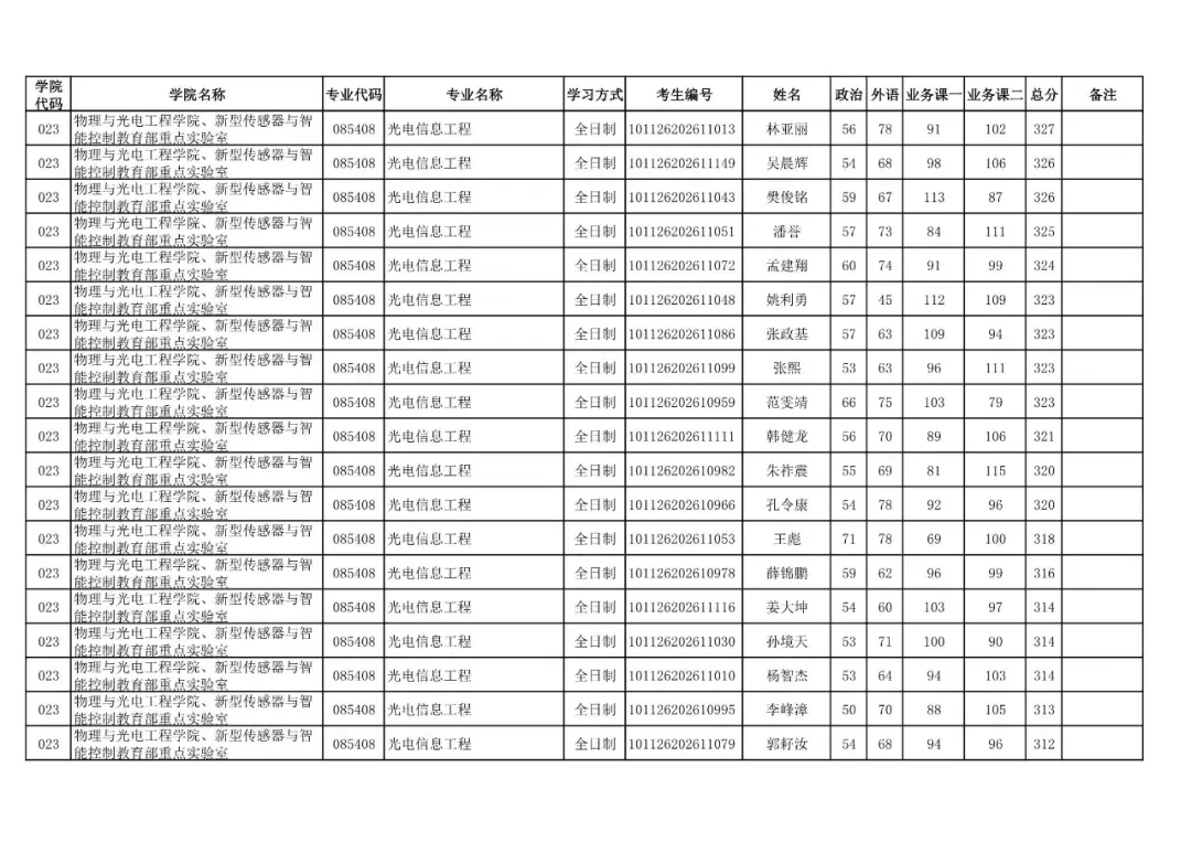 学院代码 | 学院名称 | 专业代码 | 专业名称 | 学习方式 | 考生编号 | 姓名 |