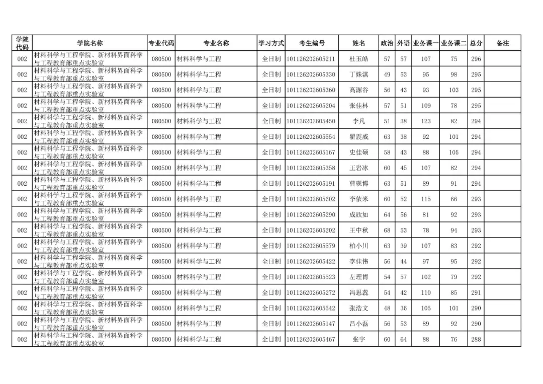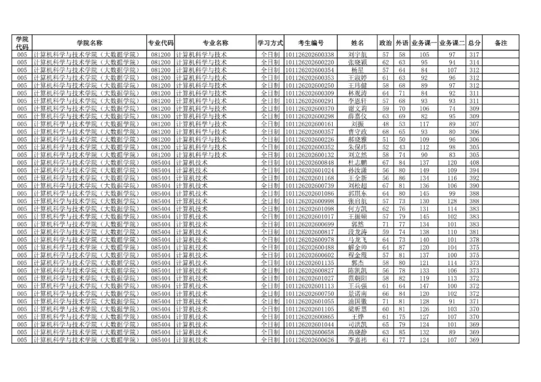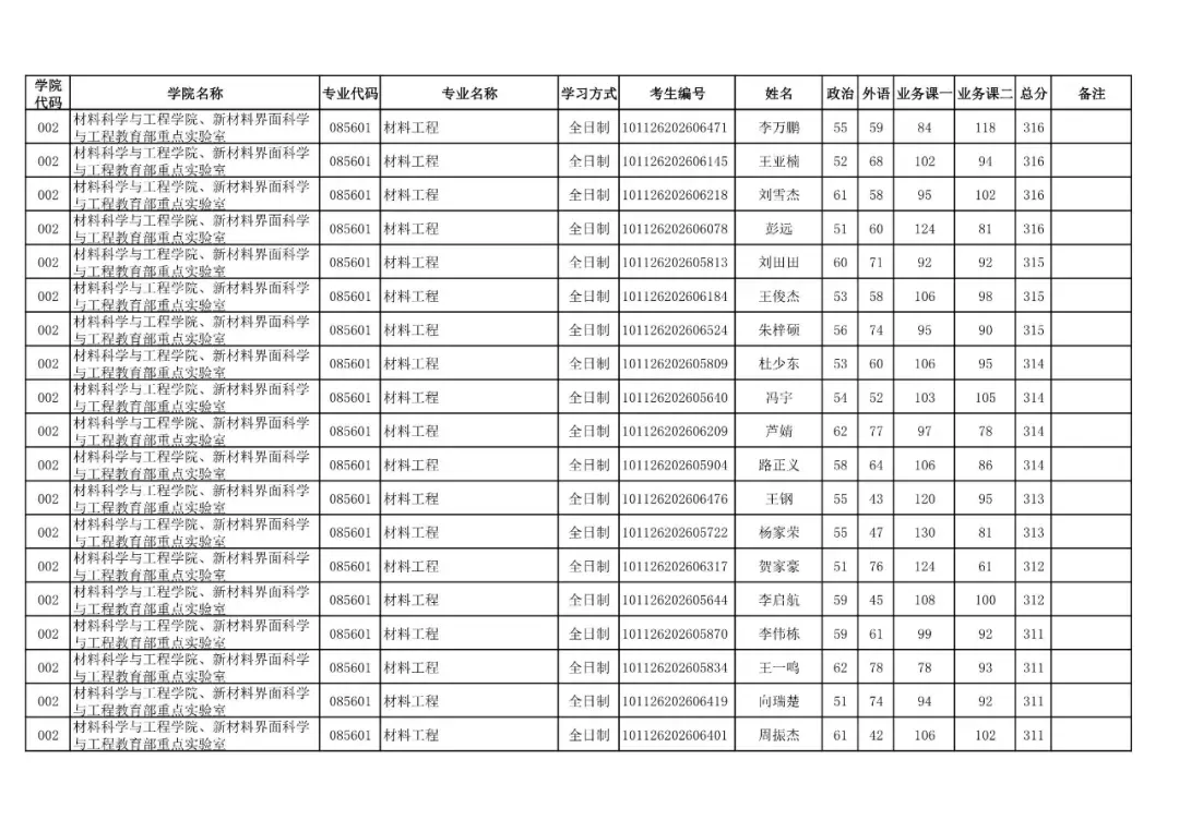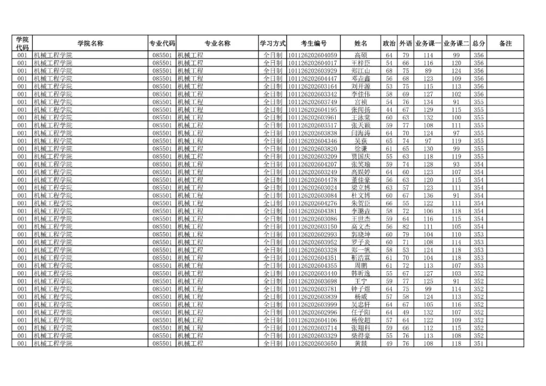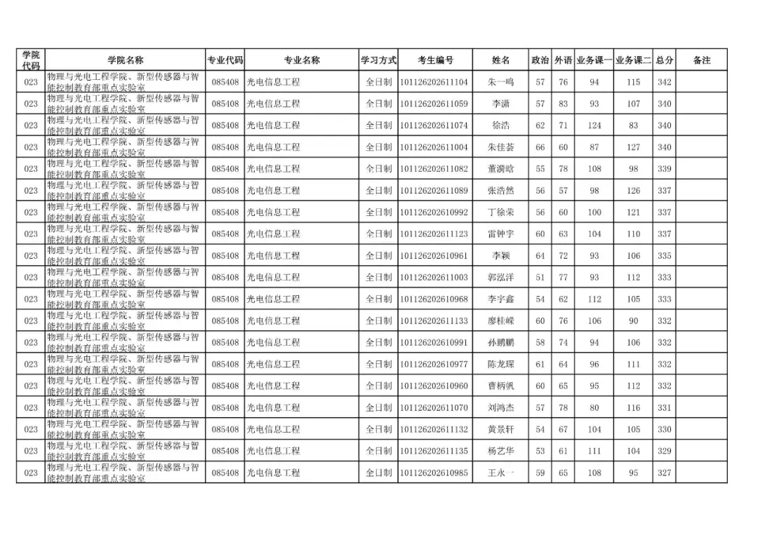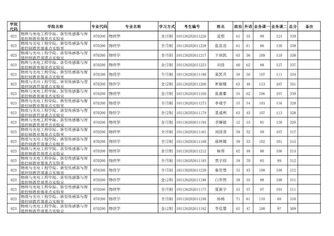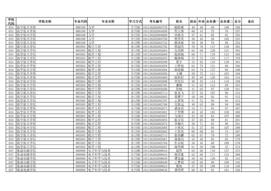 学院代码 | 学院名称 | 专业代码 | 专业名称 | 学习方式 | 考生编号 | 姓名 |