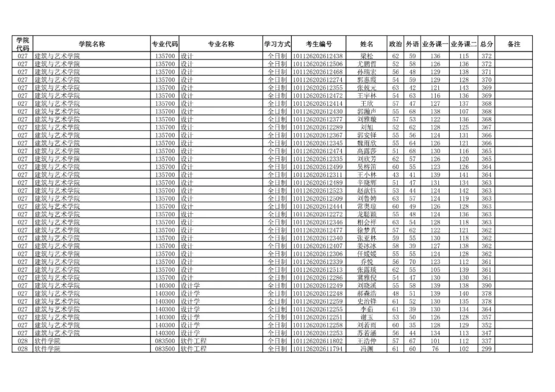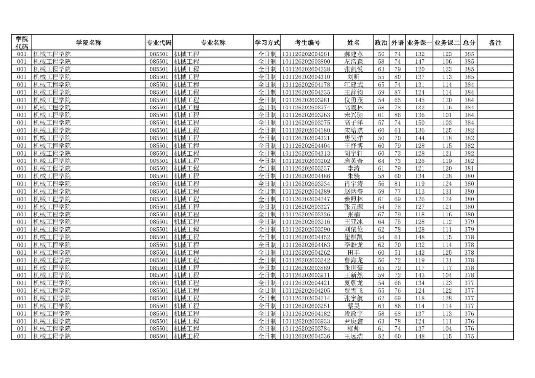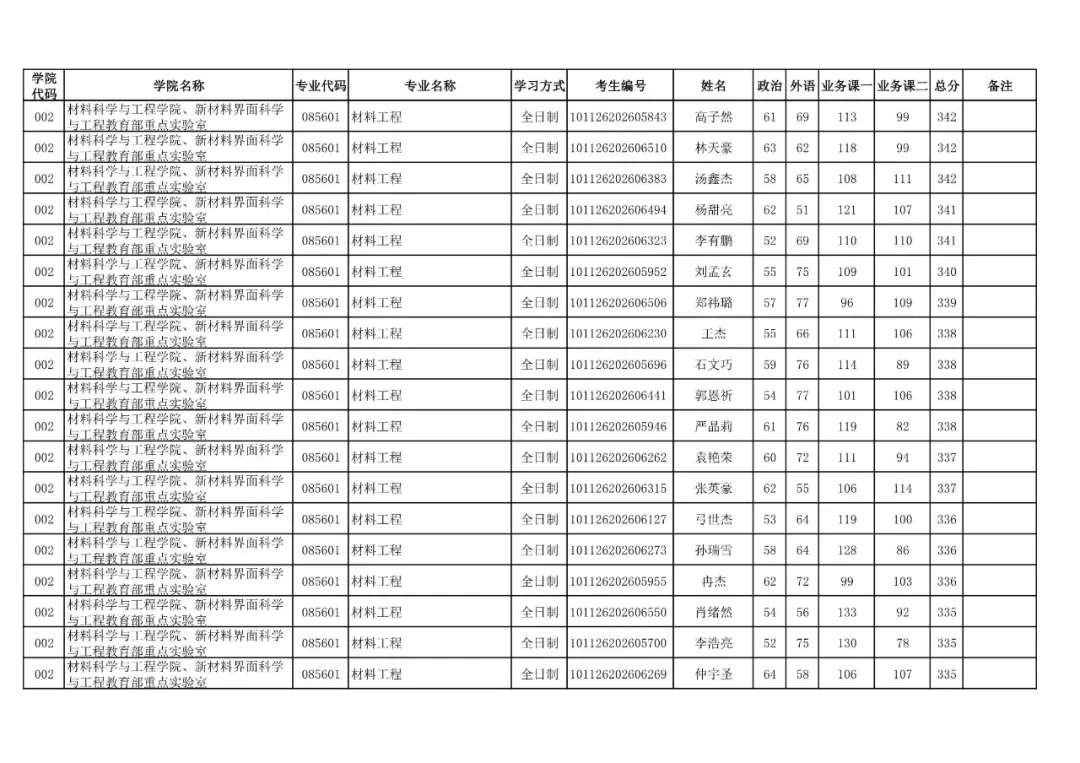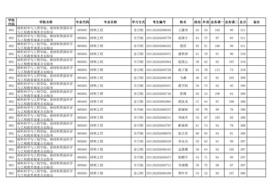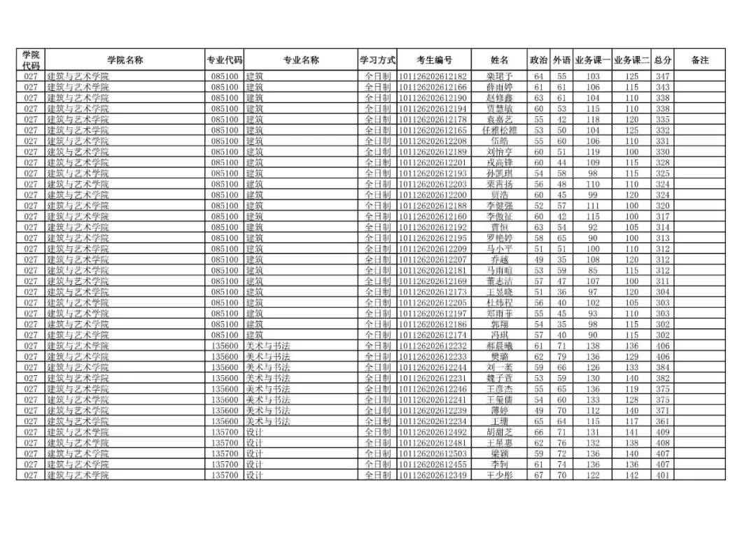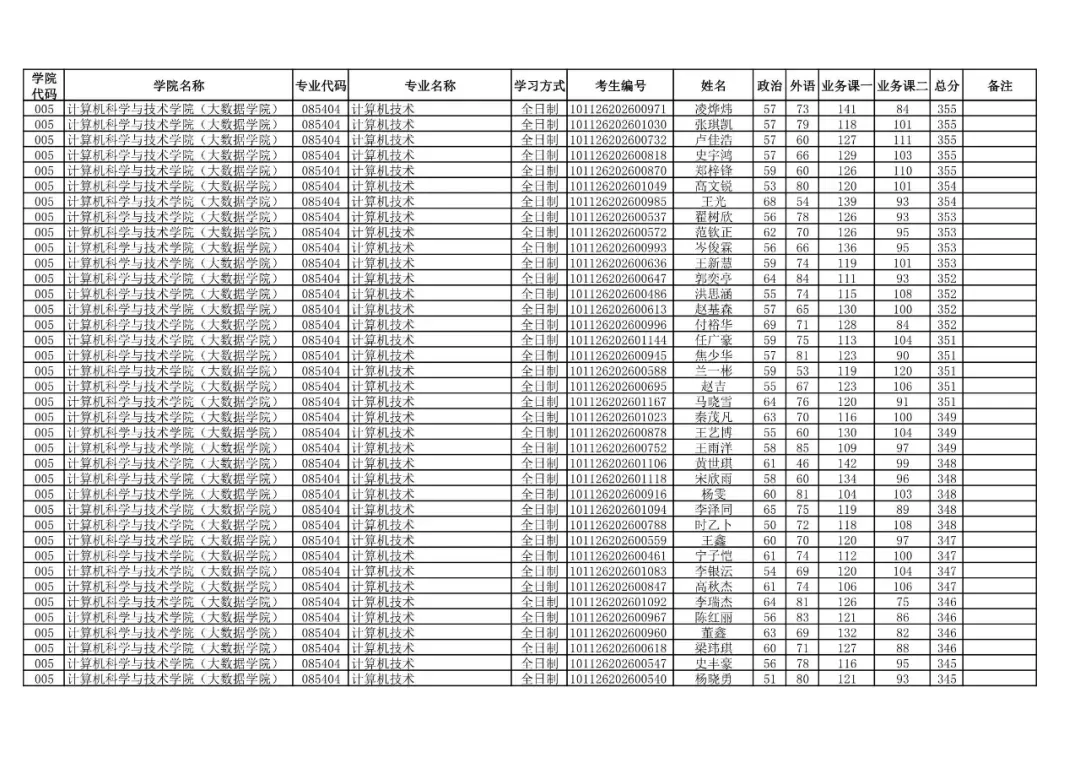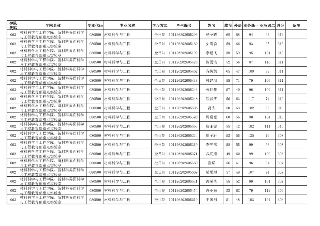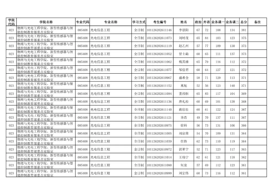 学院代码 | 学院名称 | 专业代码 | 专业名称 | 学习方式 | 考生编号 | 姓名 |
