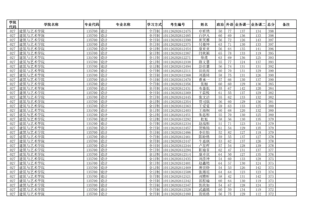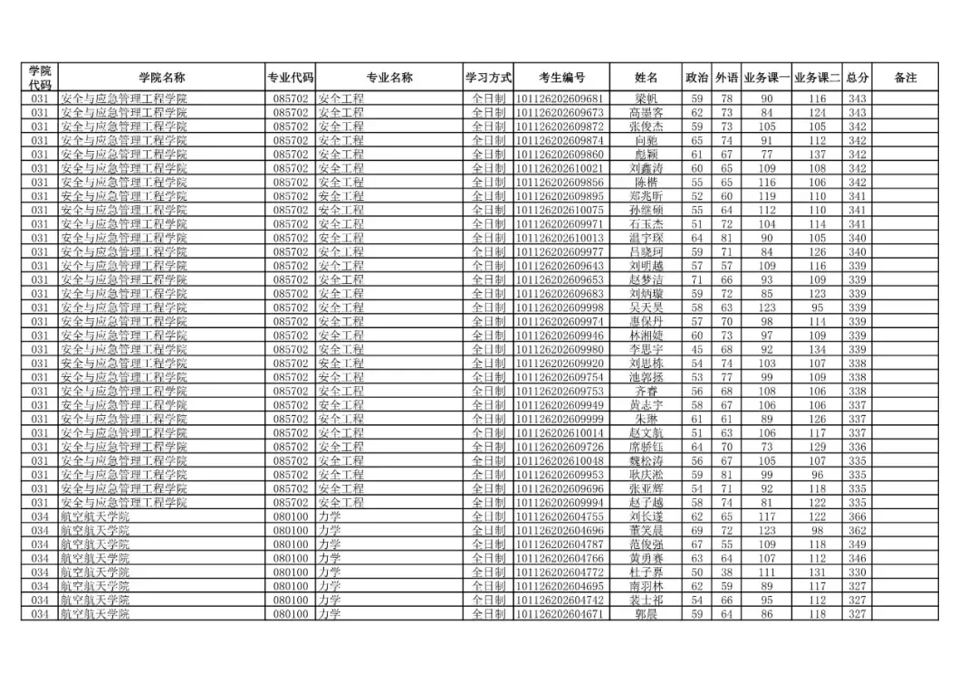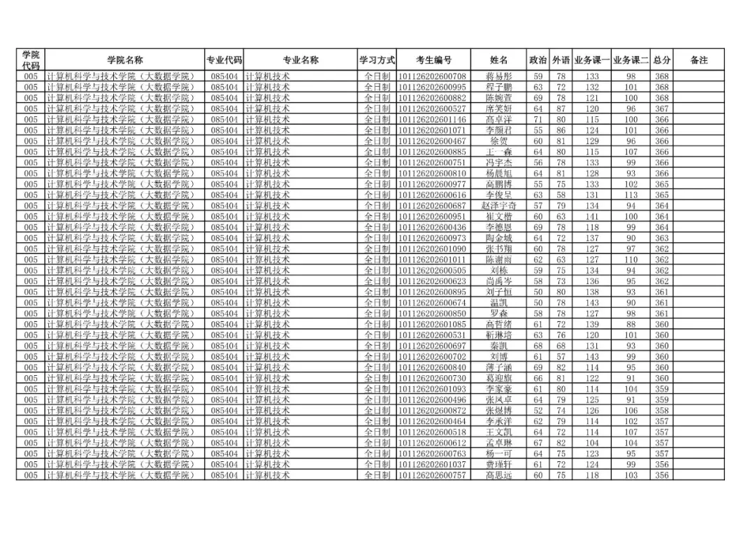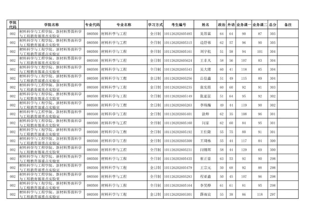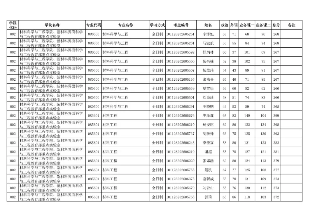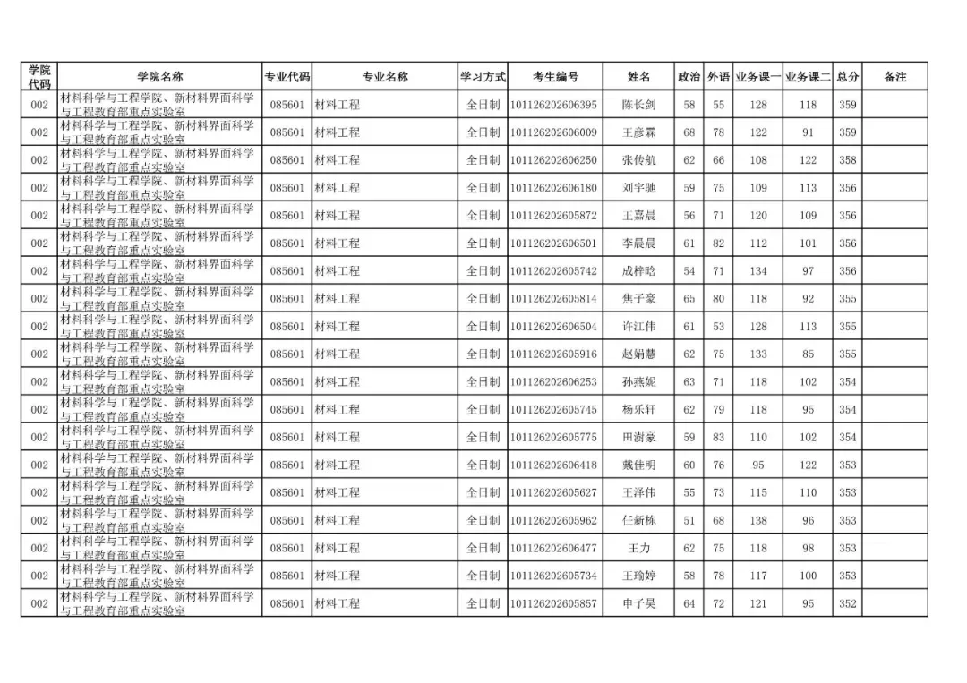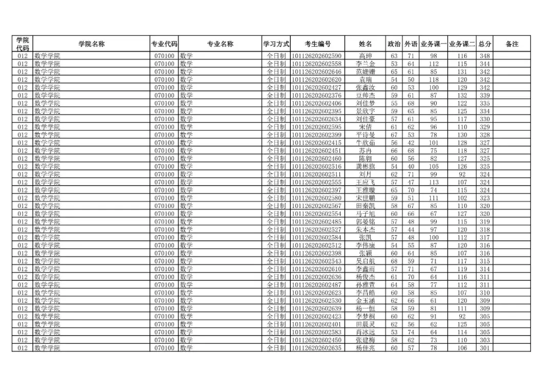 学院代码 | 学院名称 | 专业代码 | 专业名称 | 学习方式 | 考生编号 | 姓名 |
