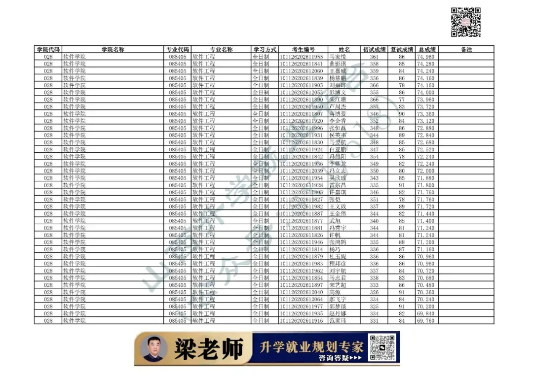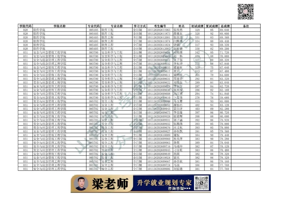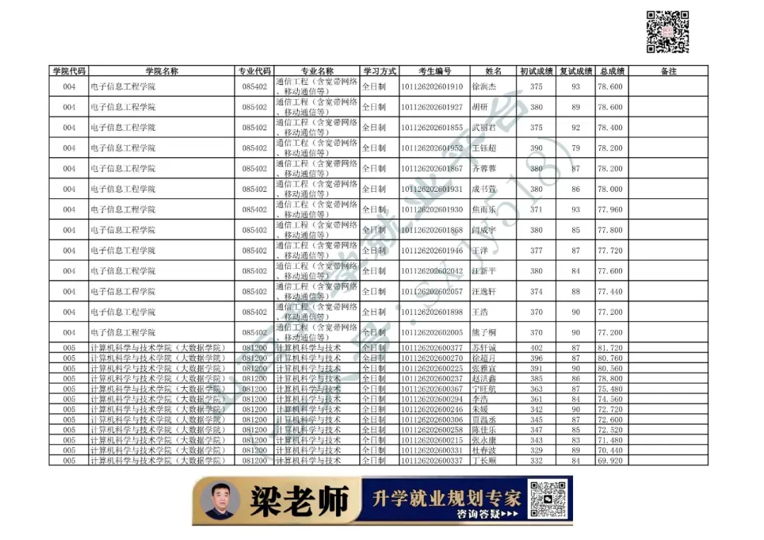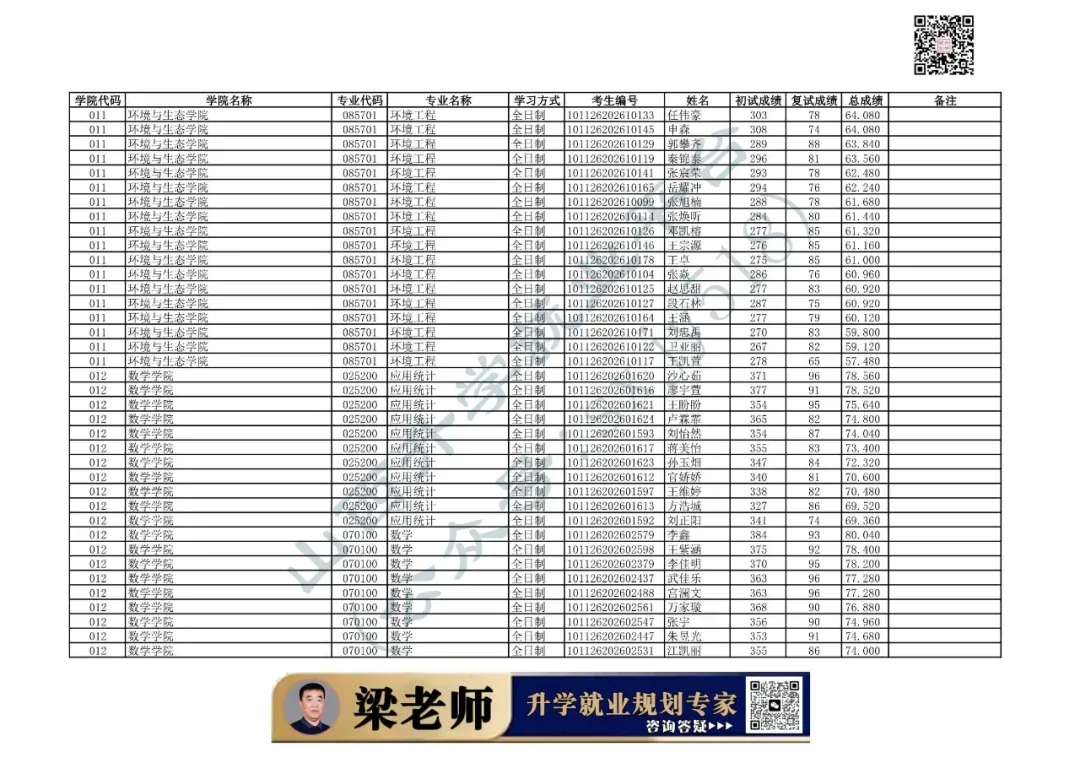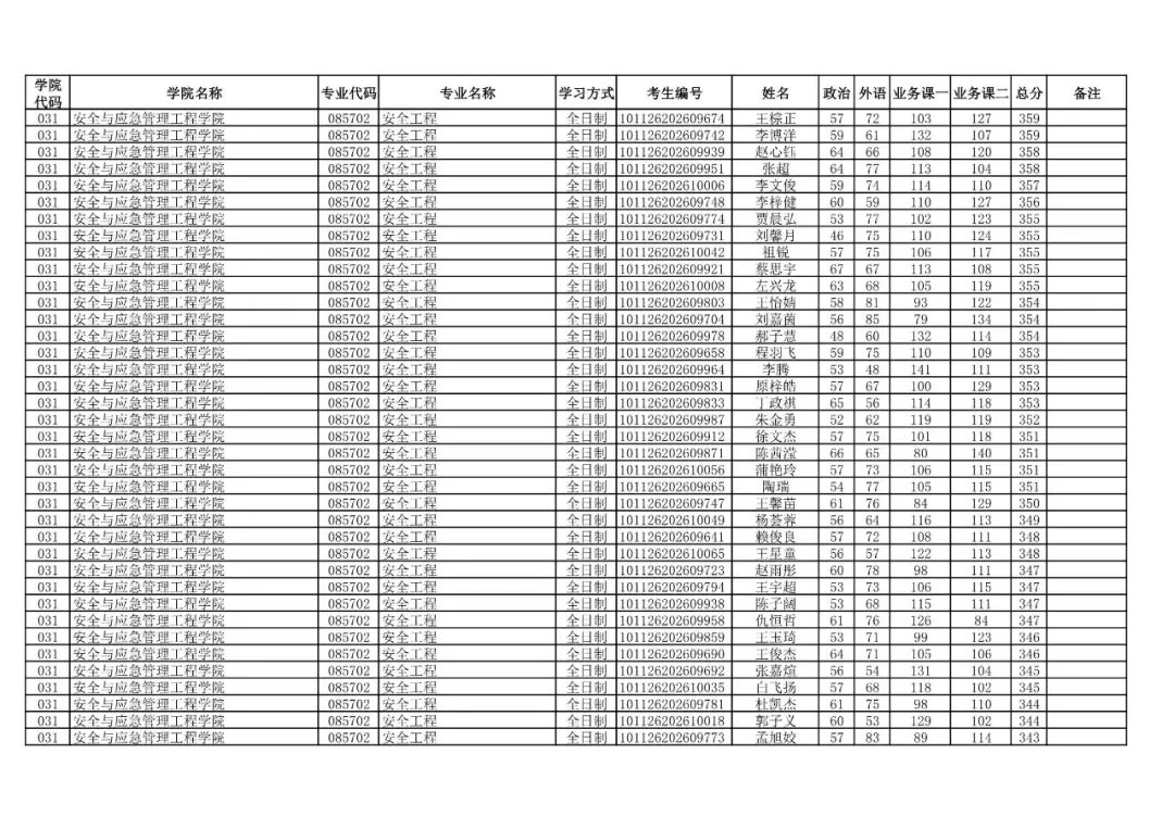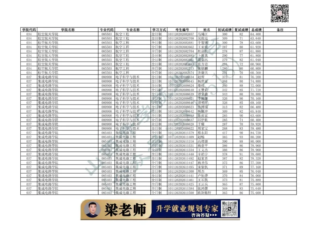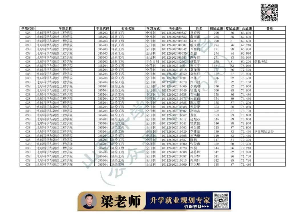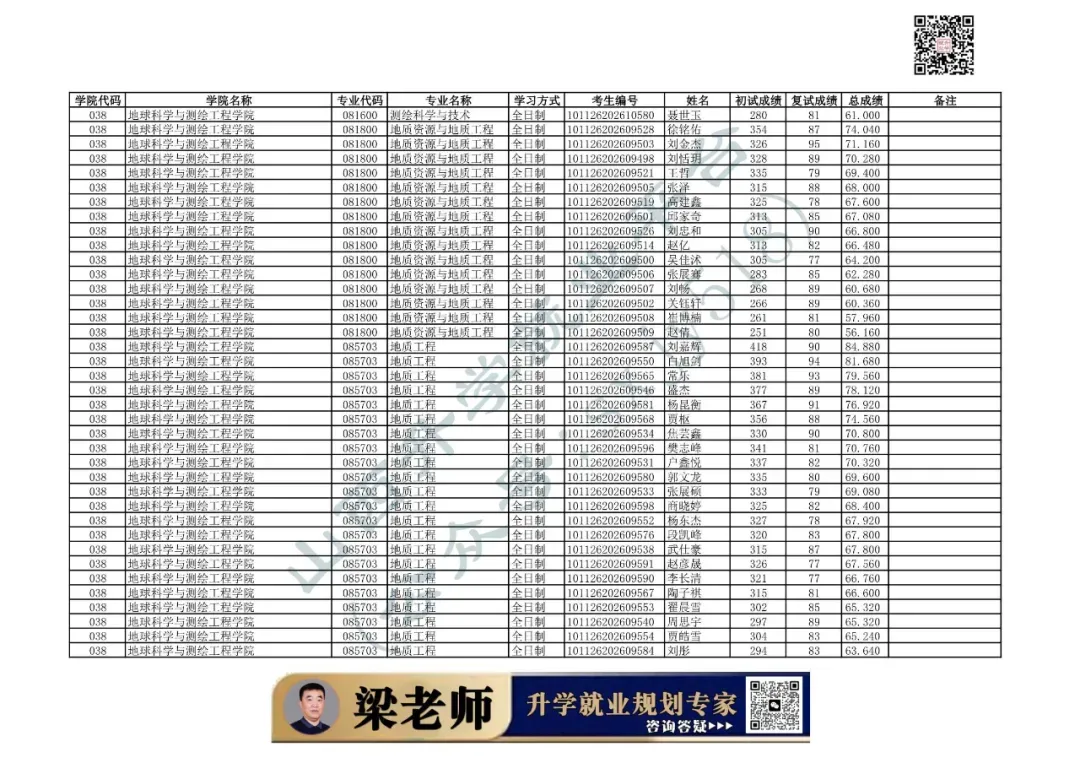 学院代码 | 学院名称 | 专业代码 | 专业名称 | 学习方式 | 考生编号 | 姓名 |