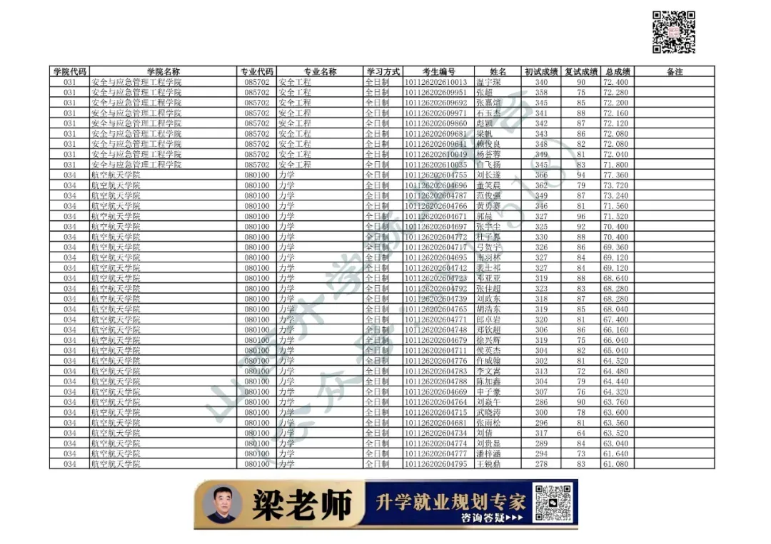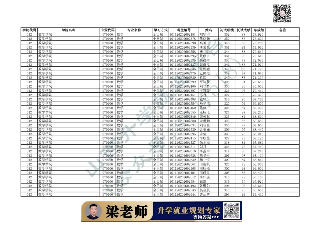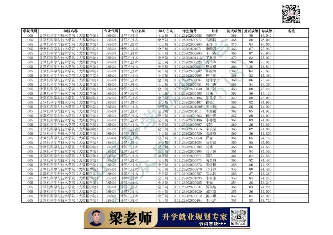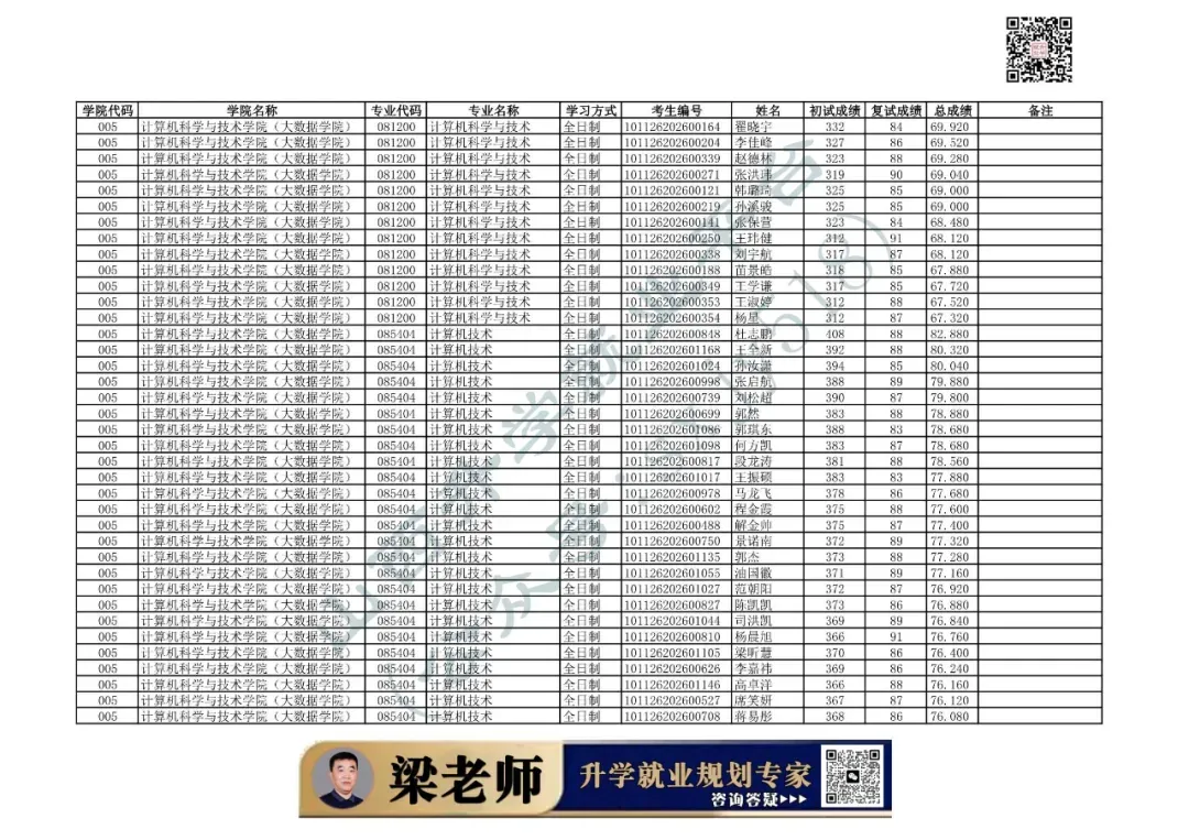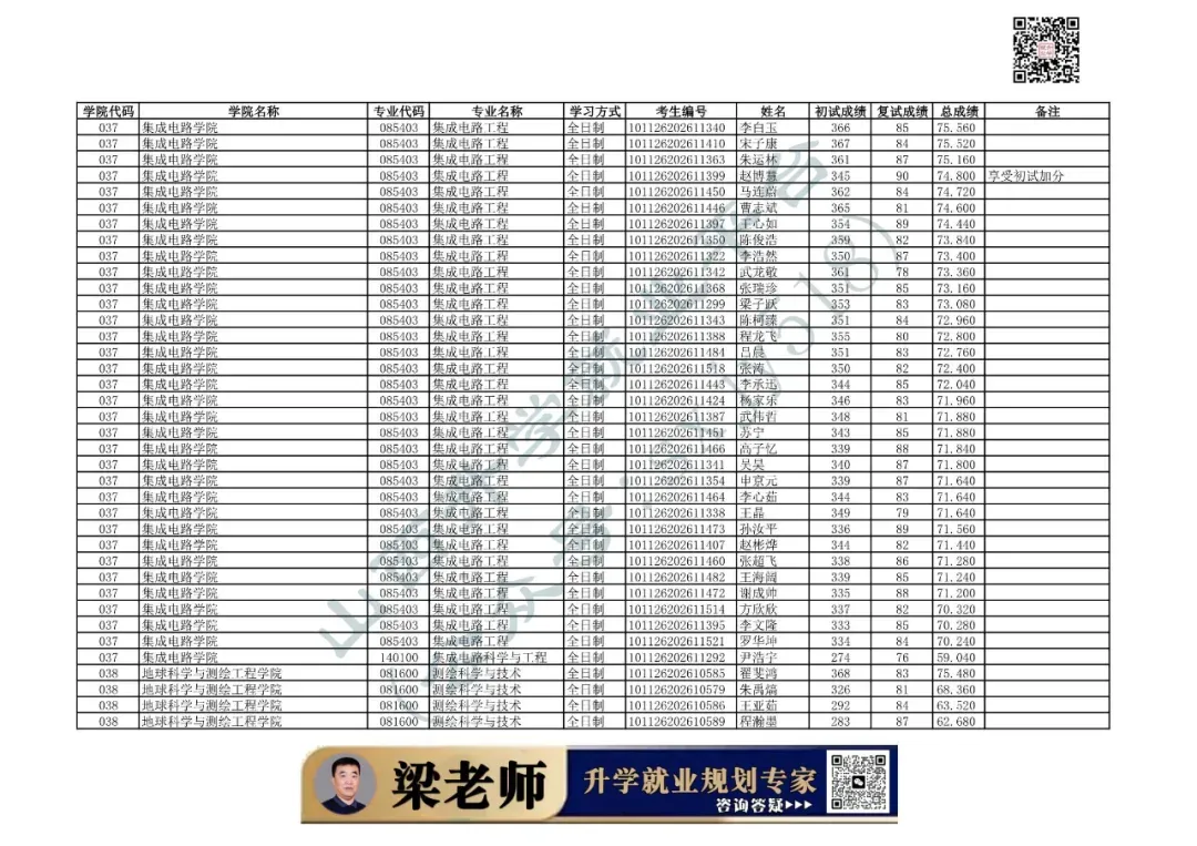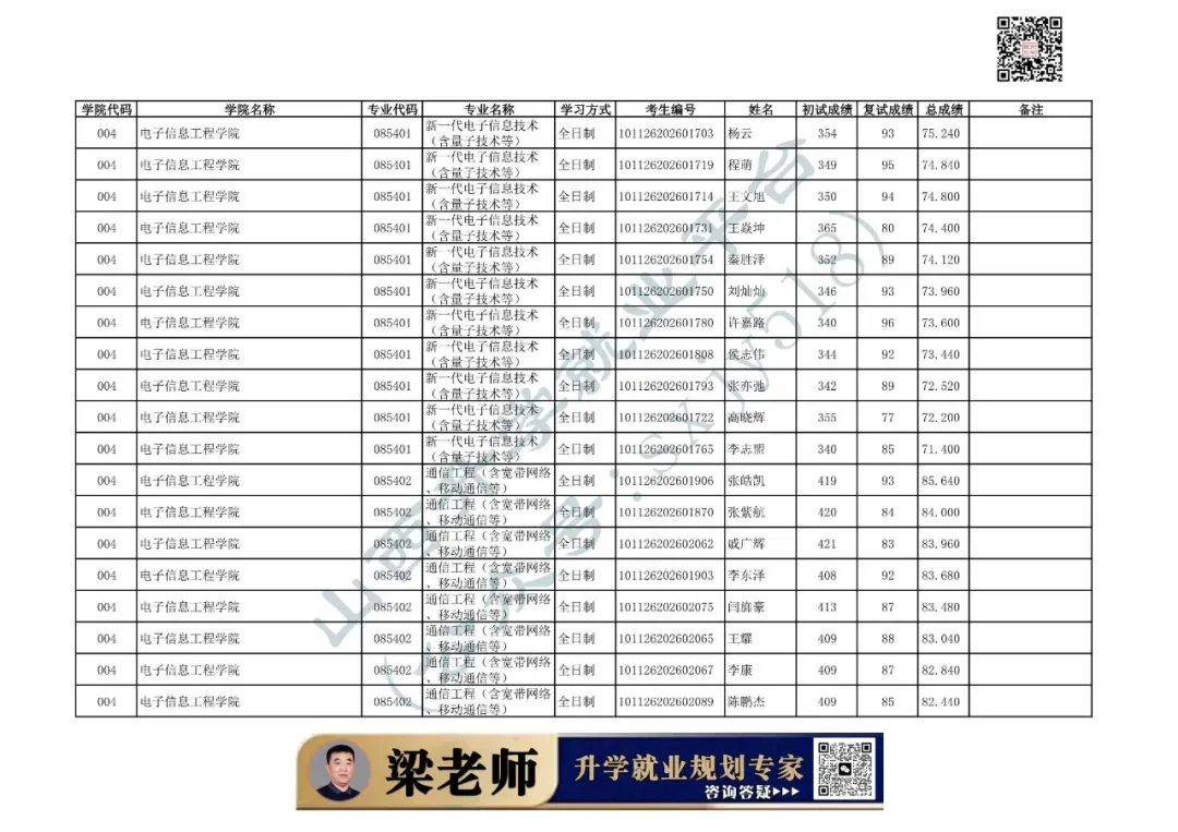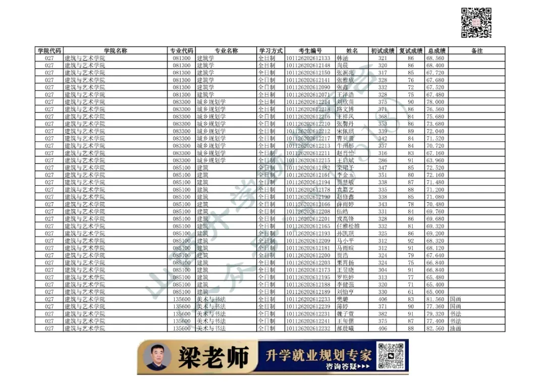 学院代码 | 学院名称 | 专业代码 | 专业名称 | 学习方式 | 考生编号 | 姓名 |