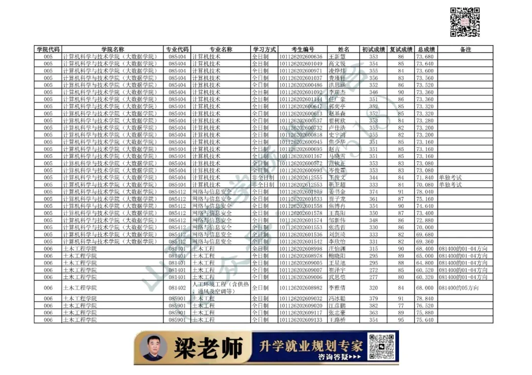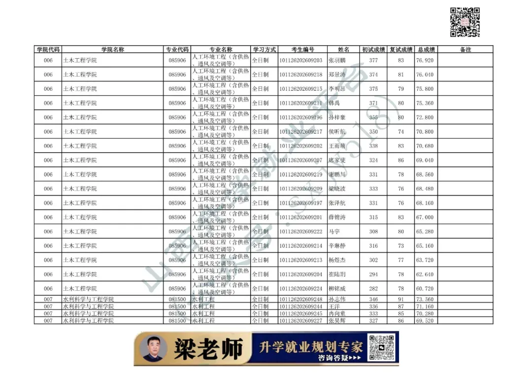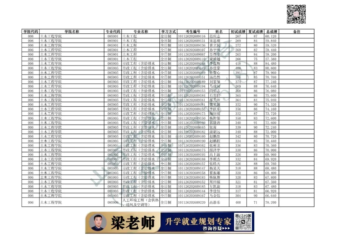 006 | 土木工程学院 | 085901 | 土木工程 | 全日制 | 101126202699904 | 李荣添 |