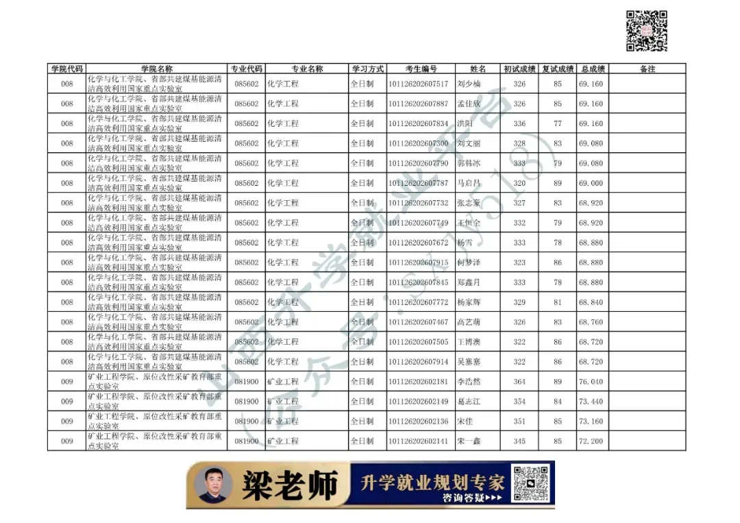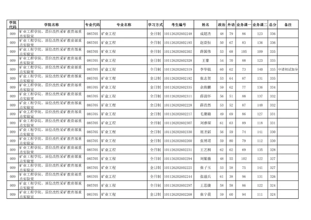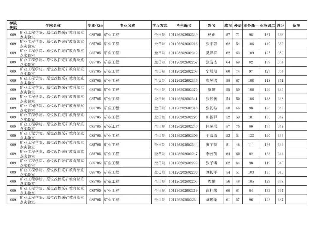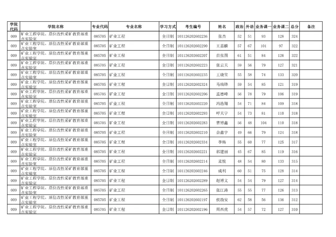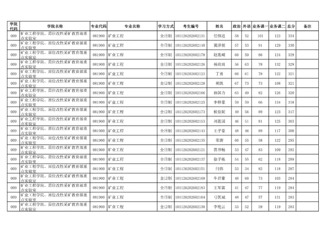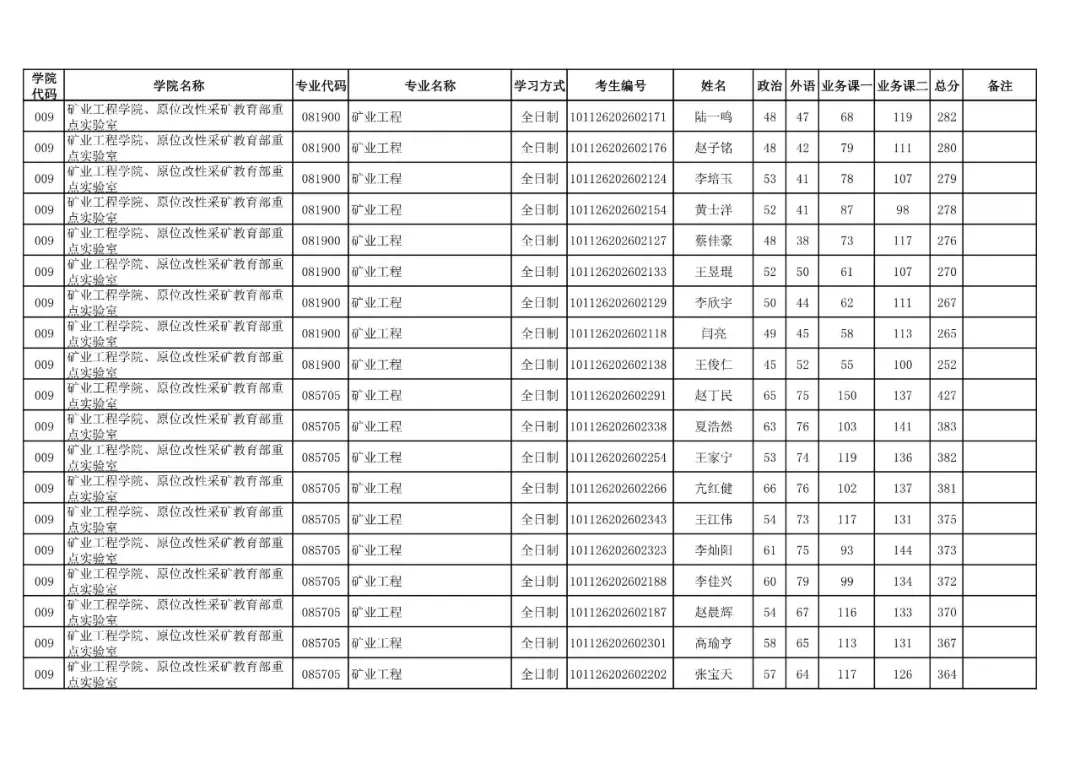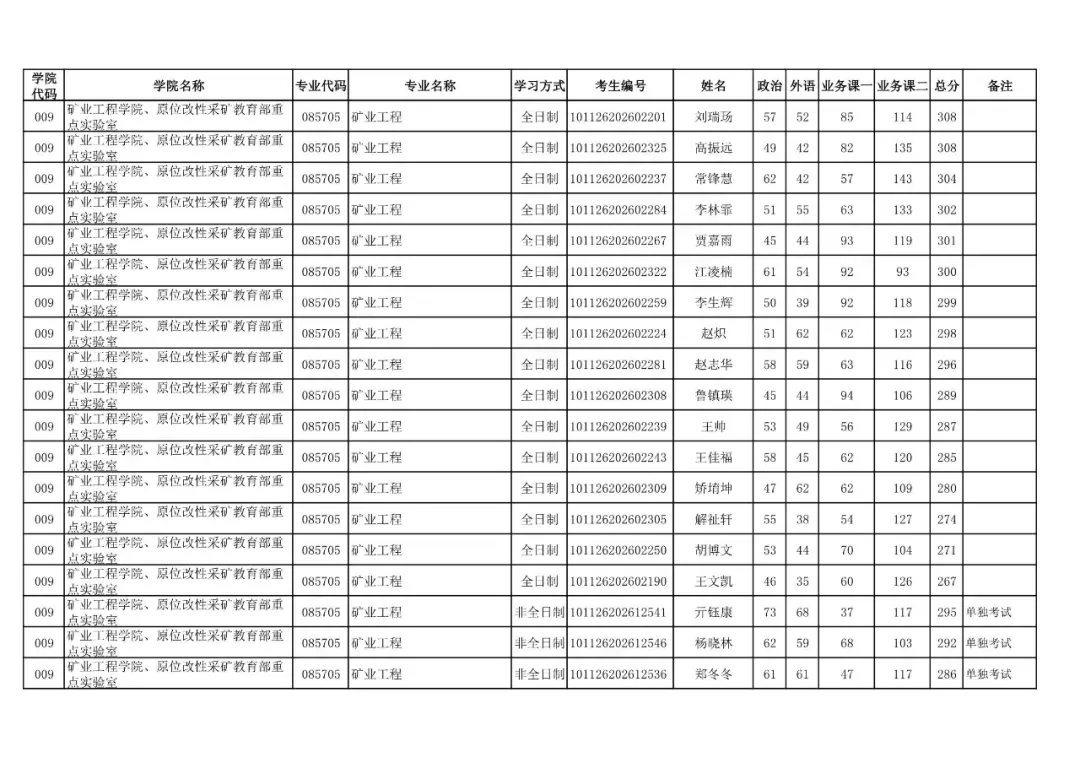 009 | 矿业工程学院、原位改性采矿教育部重点实验室 | 085705 | 矿业工程 | 非全日制 | 101126202699909 | 刘杰 |