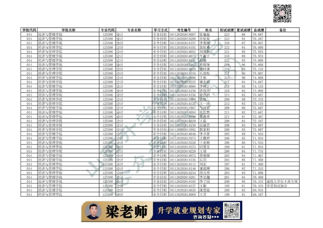 014 | 经济与管理学院 | 125300 | 会计 | 非全日制 | 101126202699913 | 王晓 |