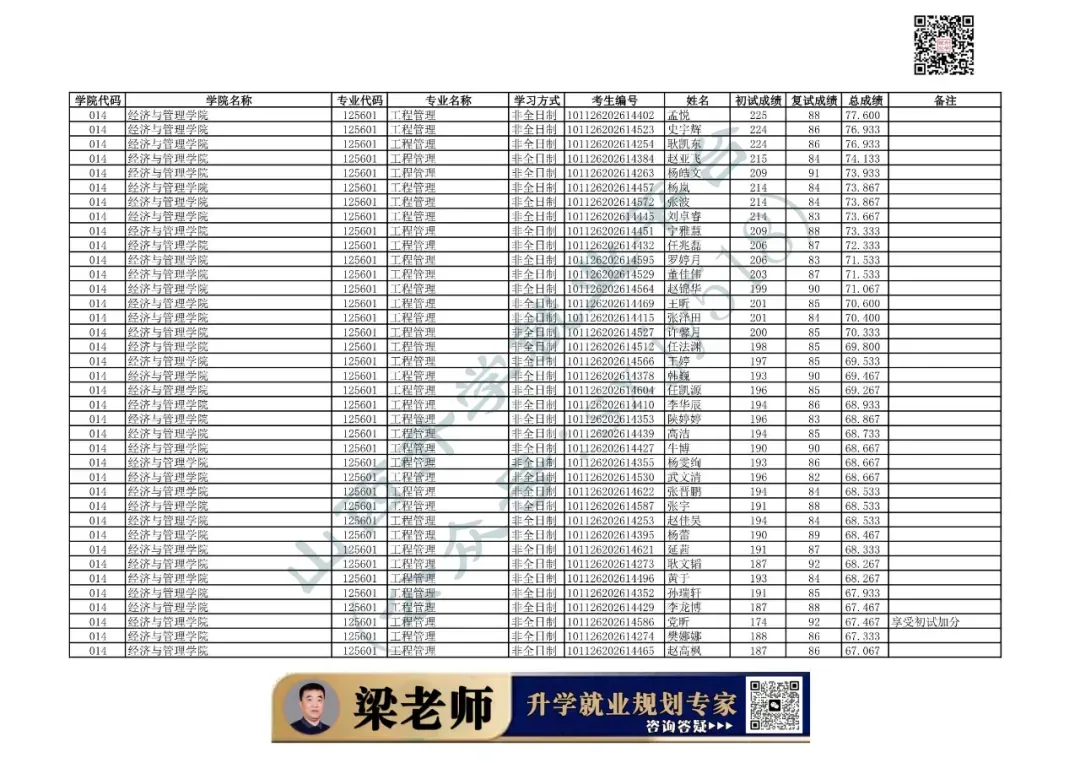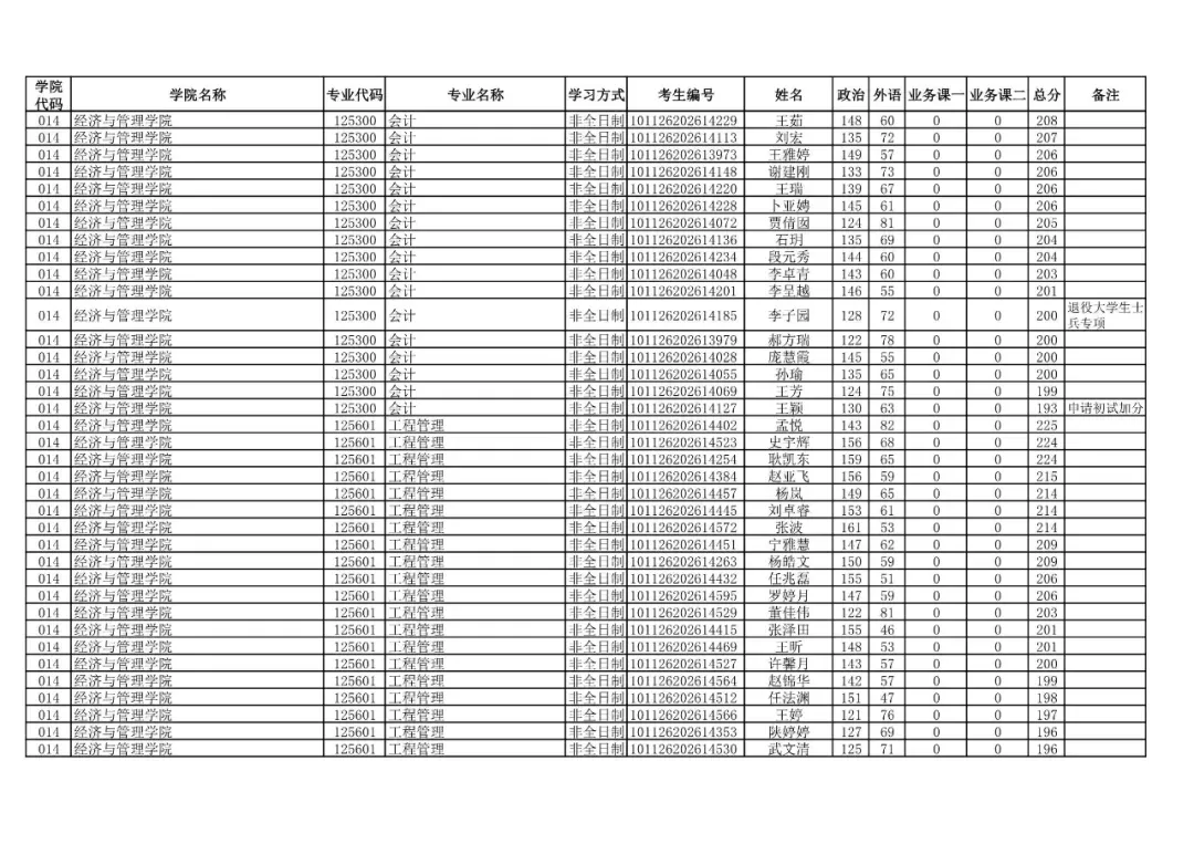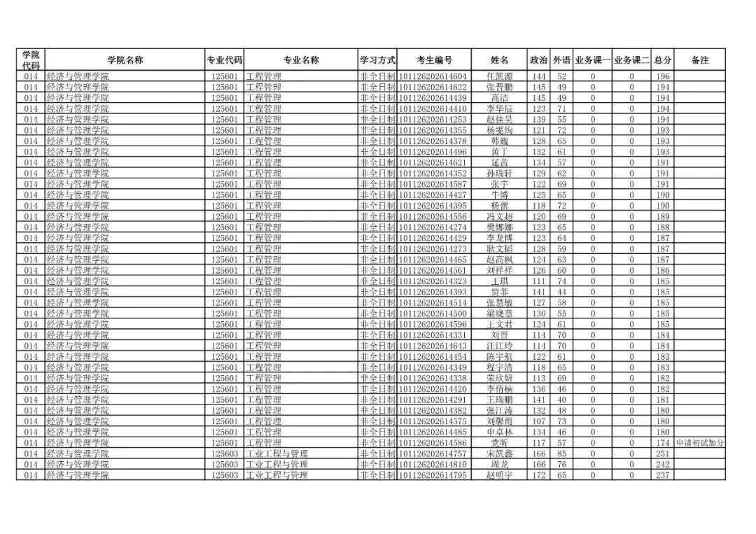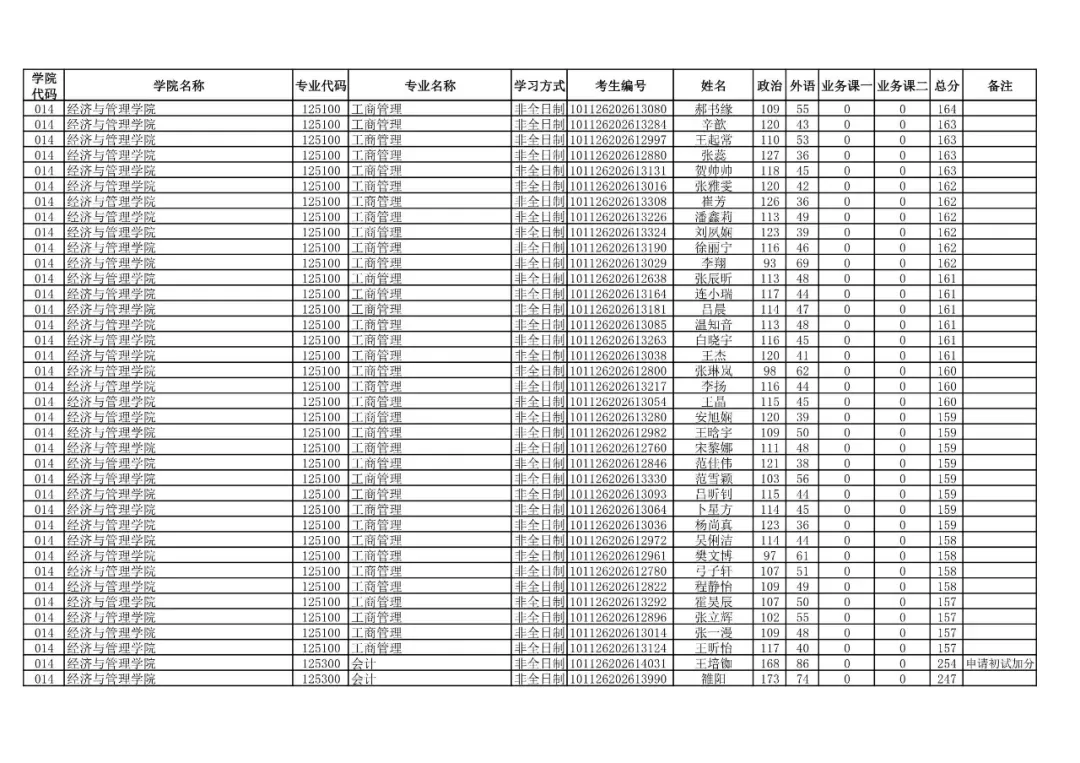 014 | 经济与管理学院 | 125100 | 工商管理 | 非全日制 | 101126202699912 | 程洋 |