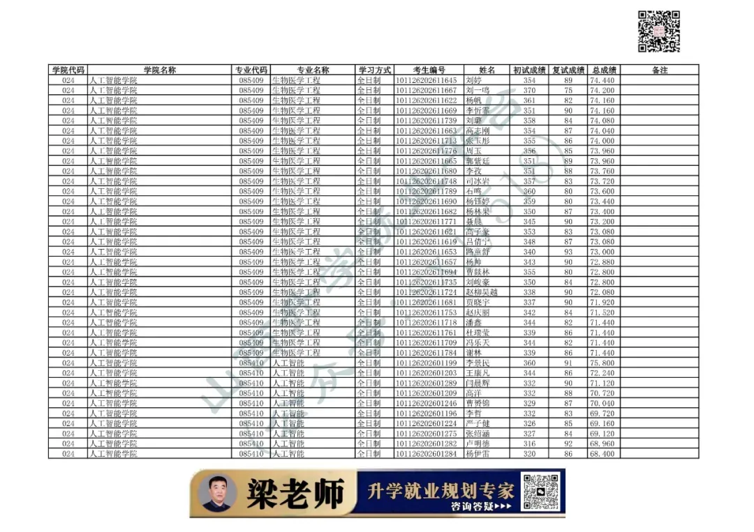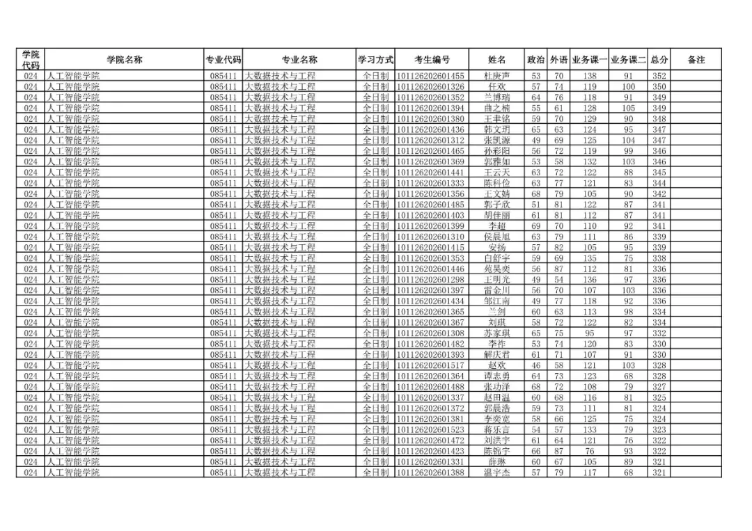 024 | 人工智能学院 | 085410 | 人工智能 | 全日制 | 101126202699907 | 冯芝蓬 |