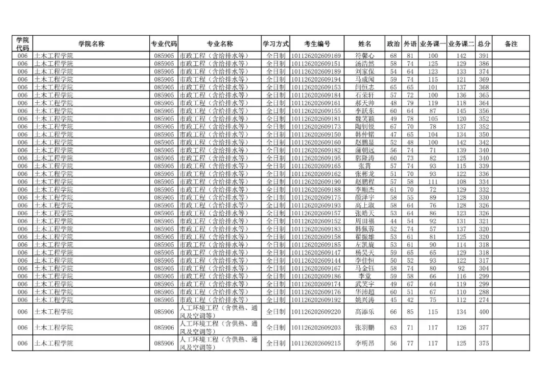 006 | 土木工程学院 | 085901 | 土木工程 | 全日制 | 101126202699903 | 张嘉政 |