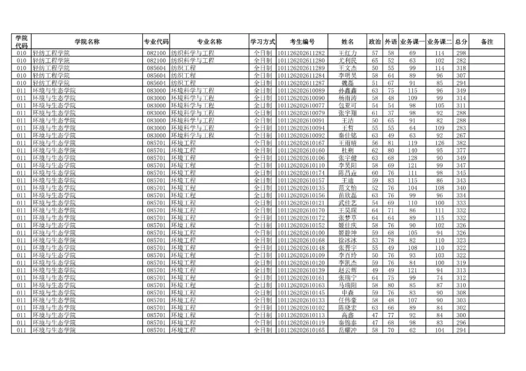 011 | 环境与生态学院 | 085701 | 环境工程 | 全日制 | 101126202699905 | 姜卫星 |