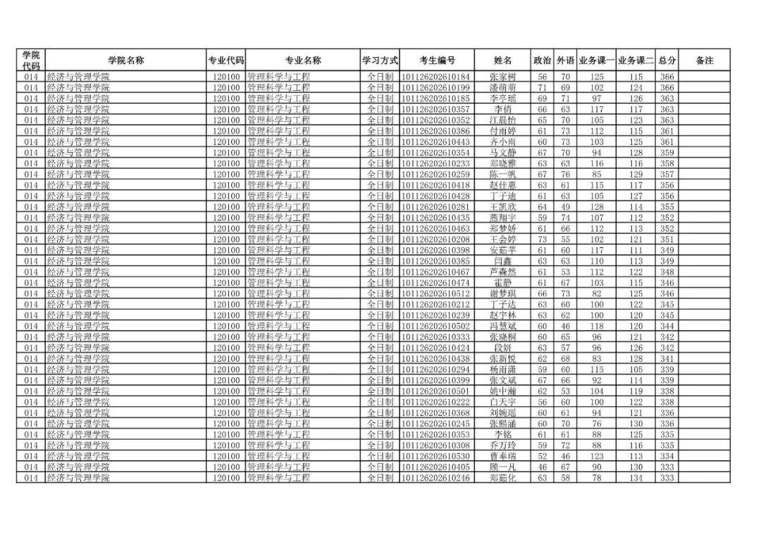 014 | 经济与管理学院 | 125100 | 工商管理 | 非全日制 | 101126202699911 | 高宇 |
