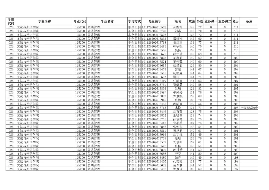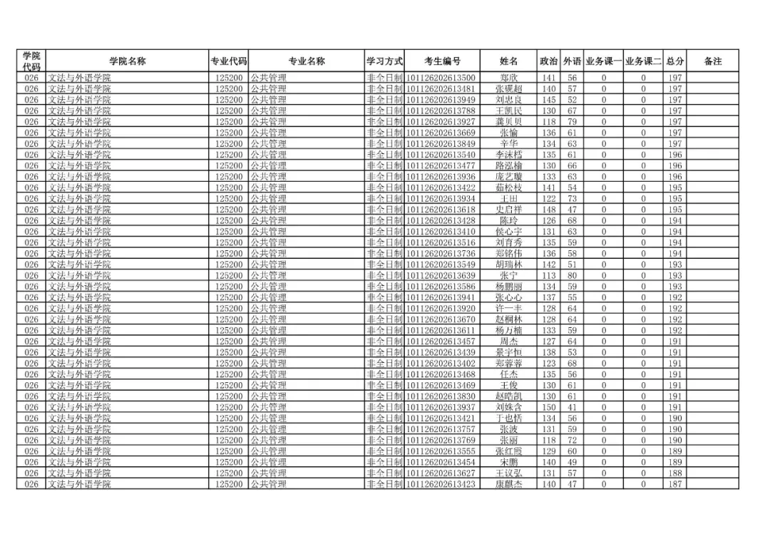 026 | 文法与外语学院 | 125200 | 公共管理 | 非全日制 | 101126202699914 | 赵一鸣 |