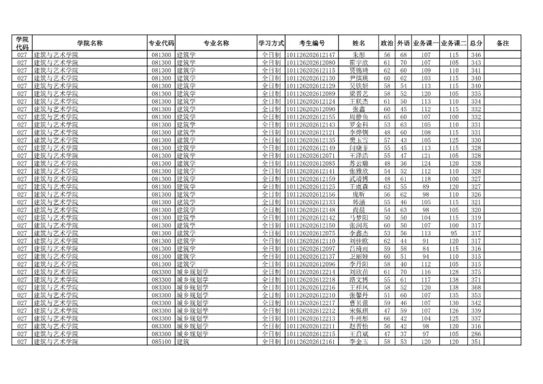 我校2026年一志愿考生进入复试的初试成绩基本要求和有关说明如下: