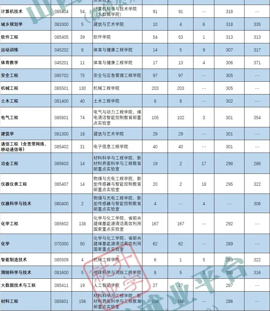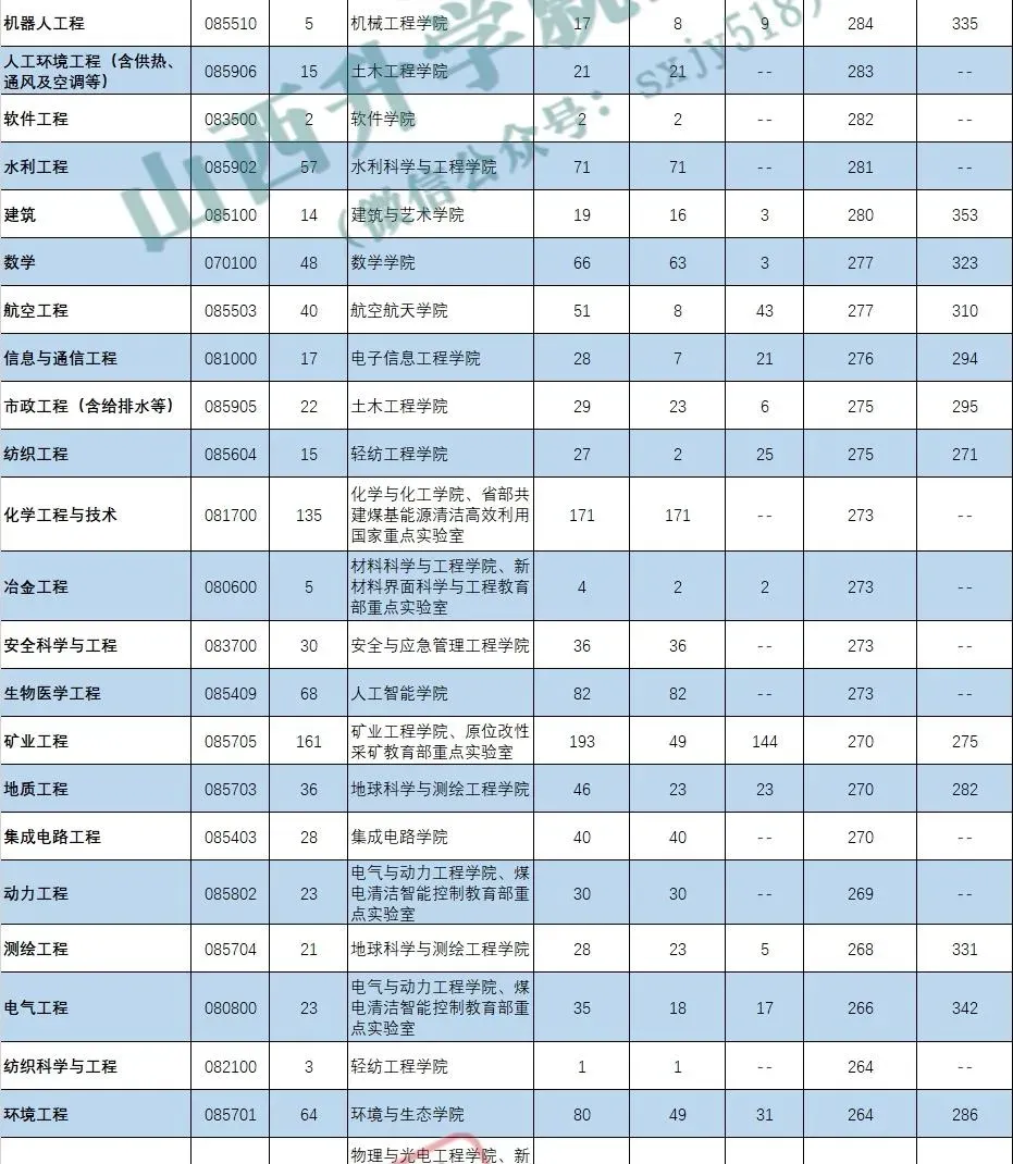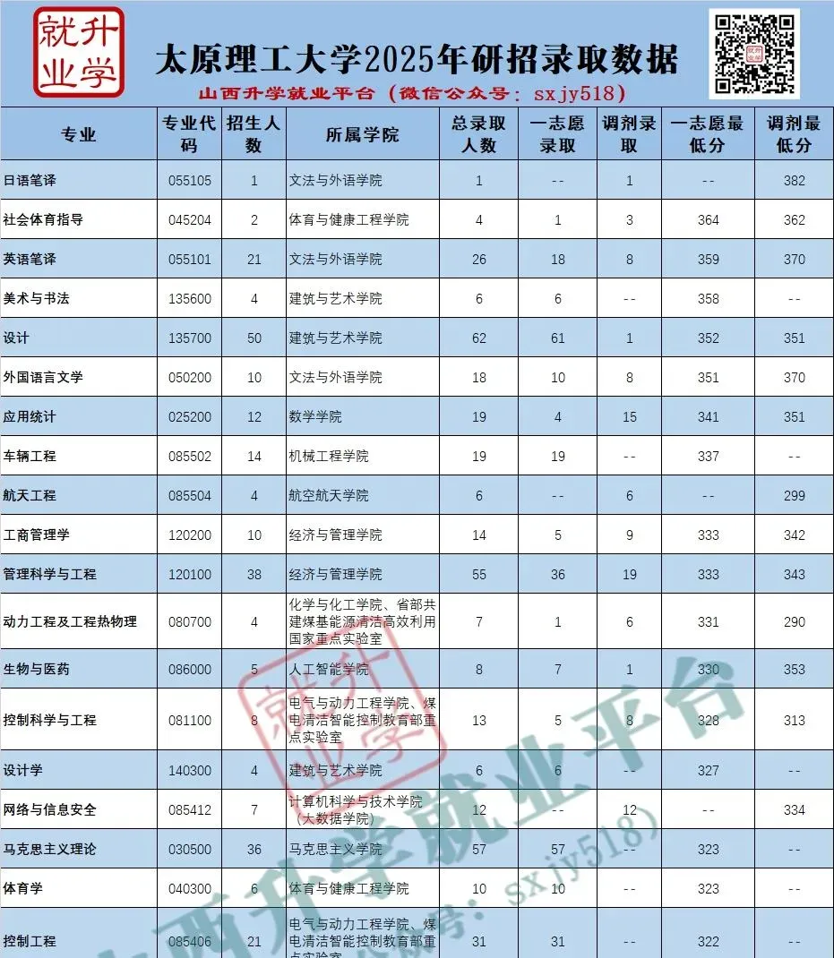 太原理工大学2025年一志愿分数线、调剂分数线