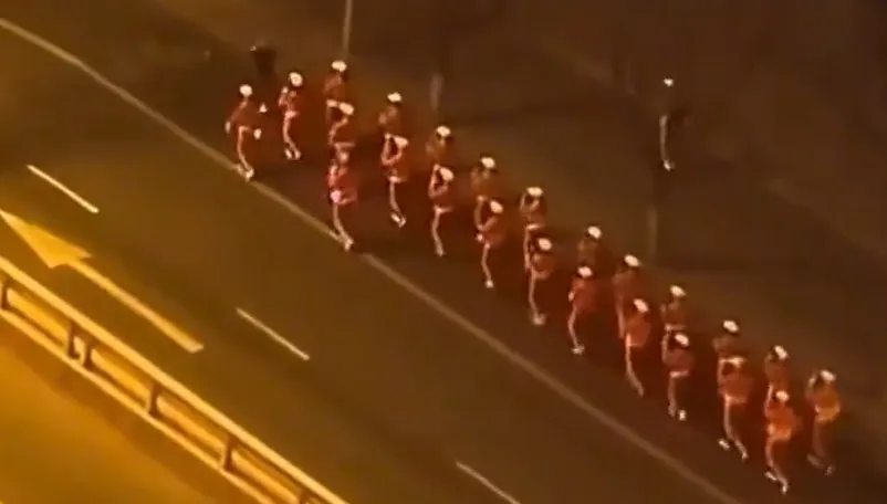 现场视频显示,天色未亮,一群身穿橙红色统一服装的人在公路非机动车道列队前行,共20余人。据了解,视频中“暴走团”的活动地点为太原市杏花岭区五一路与北中环街交叉口南侧。