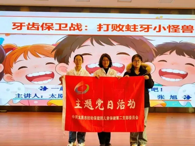 儿童保健第二党支部所辖科室——口腔保健科张旭、张晓蕾于3月20日在万柏林区第二实验小学普及口腔健康知识,讲解了正确刷牙的方法、定期口腔检查的重要性以及龋齿预防等关键内容,他们将现场演示与互动答疑相结合,引导儿童养成良好的口腔卫生习惯,守护牙齿健康。