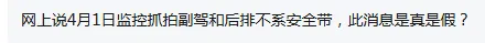 多位车友咨询、反映:网传今日(4月1号)起电子监控将抓拍机动车后排不系安全带。经与太原交管部门核实:机动车上路行驶,全车人员均须按规定规范系好安全带。目前,太原对后排座位未按规定使用安全带的违法行为,以现场管理为主,暂未通过电子监控设备抓拍处罚。安全无小事,无论前排后排,上车请第一时间系好安全带.