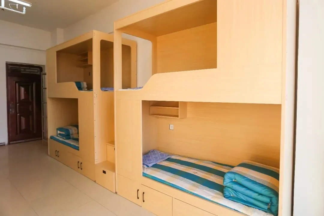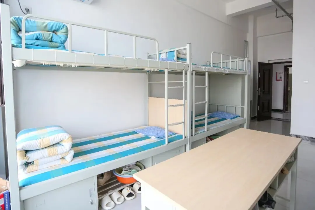 宿舍采用标准化公寓设计,干净整洁、通风采光好,女生宿舍配备独立卫浴、空调、书桌、储物柜、24小时热水,温馨又舒适,如同在家一般。