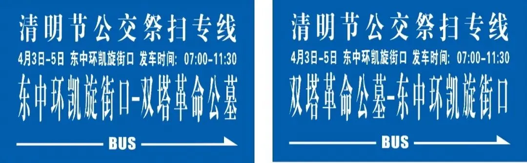 以上3条祭扫专线公交车,车辆电子路牌显示“*** 专线 *** ”,如“胜利桥东 专线 永安殡仪馆”,方便乘客识别乘坐。票价执行投币价每人次1元,刷卡成人卡每人次0.5元,学生卡每人次0.25元,各类免费卡免费乘车。发车间隔视祭扫客流情况,采取灵活调度模式,人多缩短车距,保证市民祭扫出行需求。(来源:智慧生活报)
