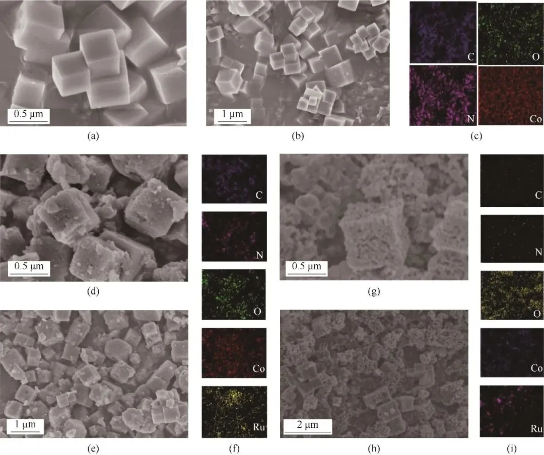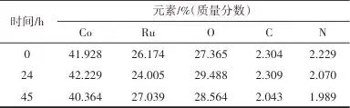 表1稳定性测试过程中在不同时间下(0、24、45 h)通过EDS测试催化剂中Co、Ru、O、C和N元素含量Table 1Elemental contents of Co, Ru, O, C and N in catalysts tested by EDS at different times (0, 24, 45 h) during the stability tests