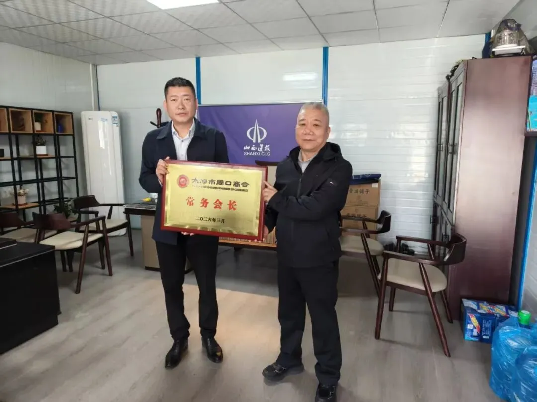 2026年 4月2日,太原市周口商会隆重举行授牌仪式。商会会长郭运荣、秘书长隋东海、姚文杰共同出席。仪式上,郭会长向张亚伟授予“常务会长”牌匾。