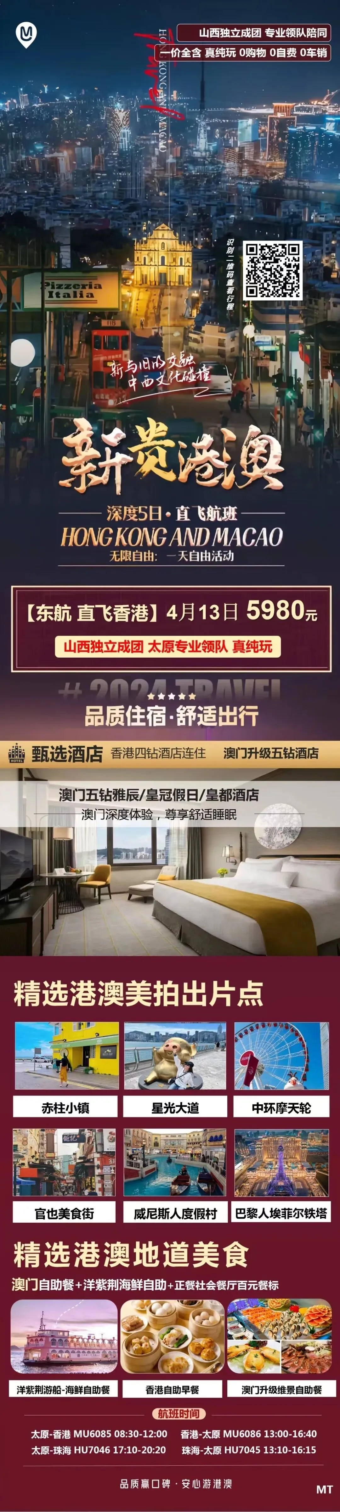 澳门1晚五钻酒店|香港1晚四钻舒适