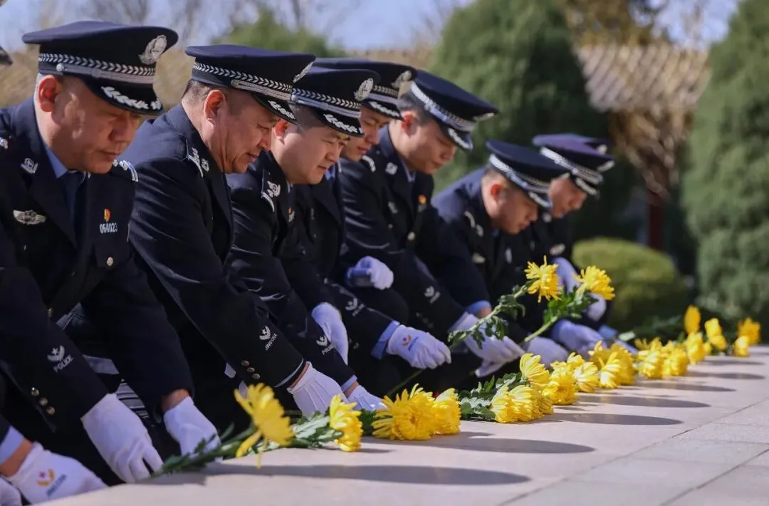 一束鲜花,一份怀念,一份敬仰。民警们向革命烈士敬献鲜花,以最庄重的仪式表达对先烈的无限缅怀。