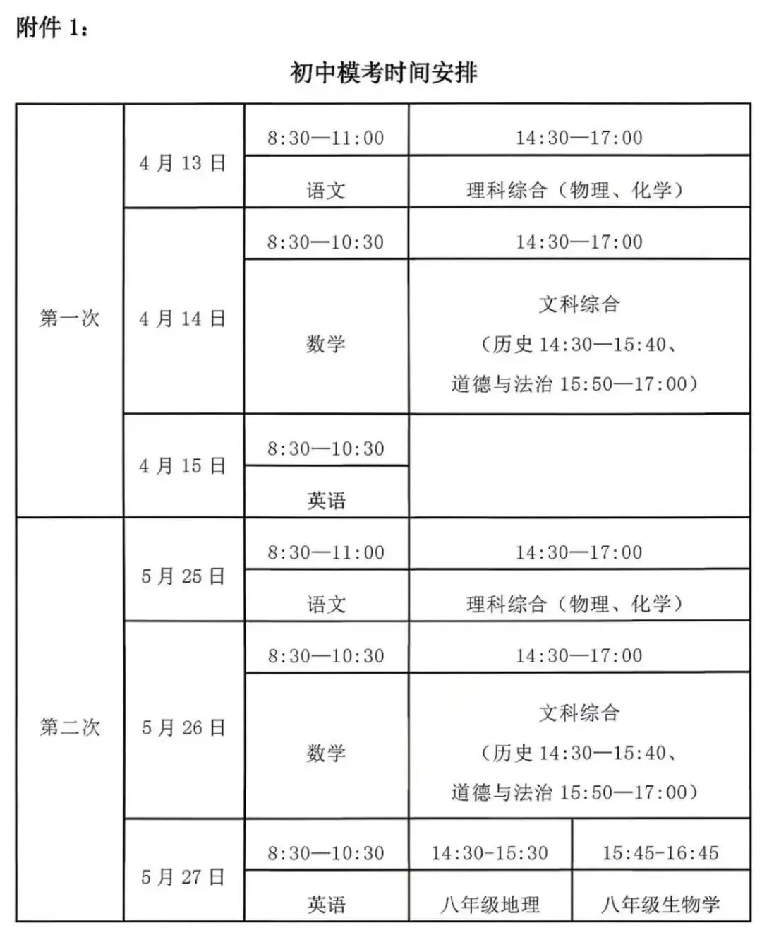 >太原中考一模、二模考试时间公布!