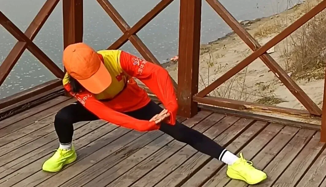 再做高抬腿、弓步走、髋关节环绕等动态拉伸,激活腿部、核心肌肉;