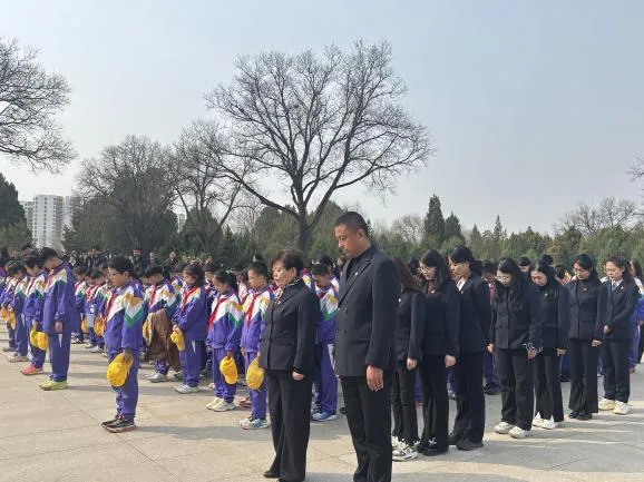 巍巍青山,松柏苍翠。在“死难烈士纪念碑”前,师生们整齐列队,庄严肃立。随着主持人浑厚而庄重的声音响起,祭扫仪式正式开始。全体师生面向纪念碑,奏唱中华人民共和国国歌,嘹亮的歌声在陵园上空回荡。随后,全场脱帽默哀一分钟,向为太原解放事业英勇献身的烈士们致以最深切的哀思。