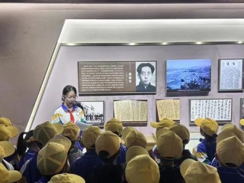 随后,师生们分批进入太原解放纪念馆展厅参观。在参观过程中,五年级的芦奕然同学主动担任起“小小讲解员”的角色,为低年级的弟弟妹妹们讲述革命先烈的故事。低年级的同学们围在芦奕然身边,听得格外认真,眼神中闪烁着敬佩的光芒。这种“大手拉小手”的讲解方式,让红色故事在孩子们之间传递,也让革命精神在潜移默化中生根发芽。