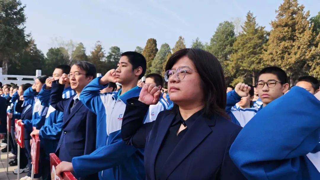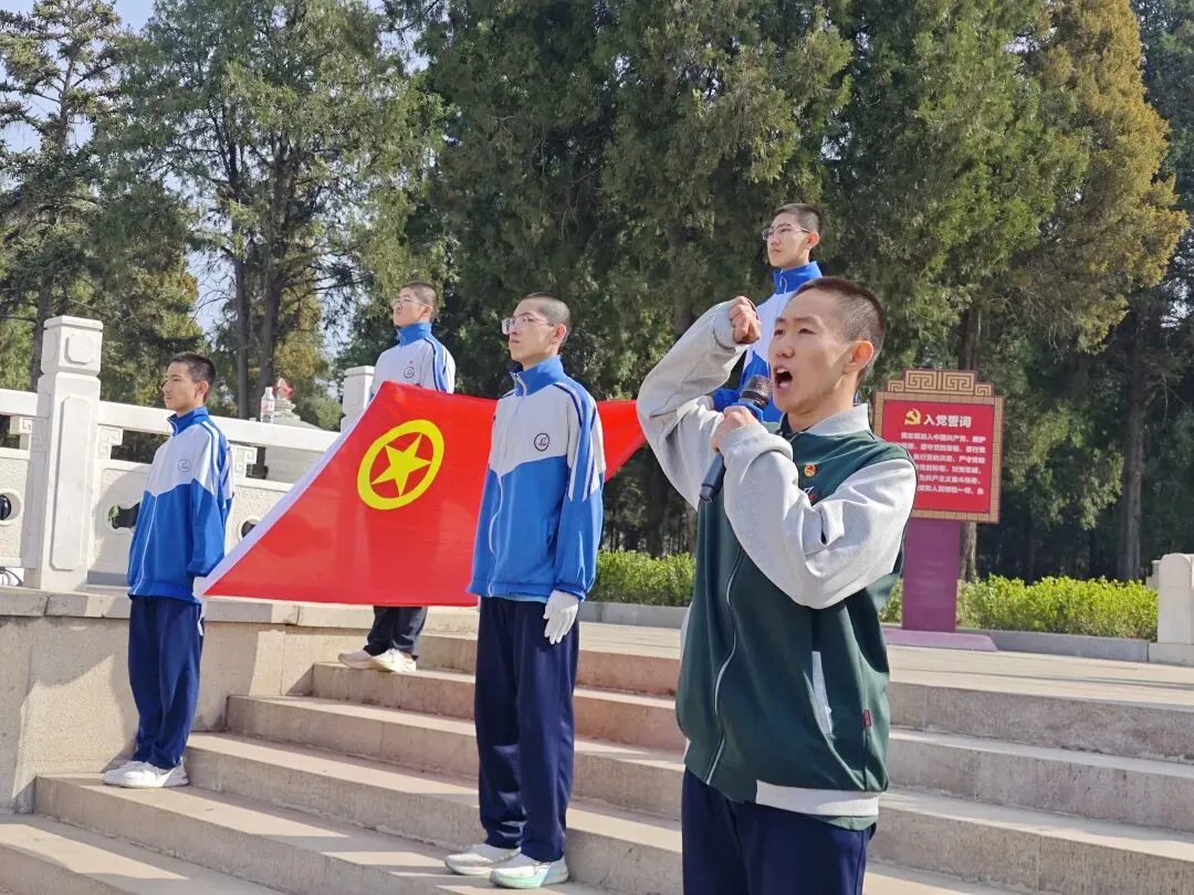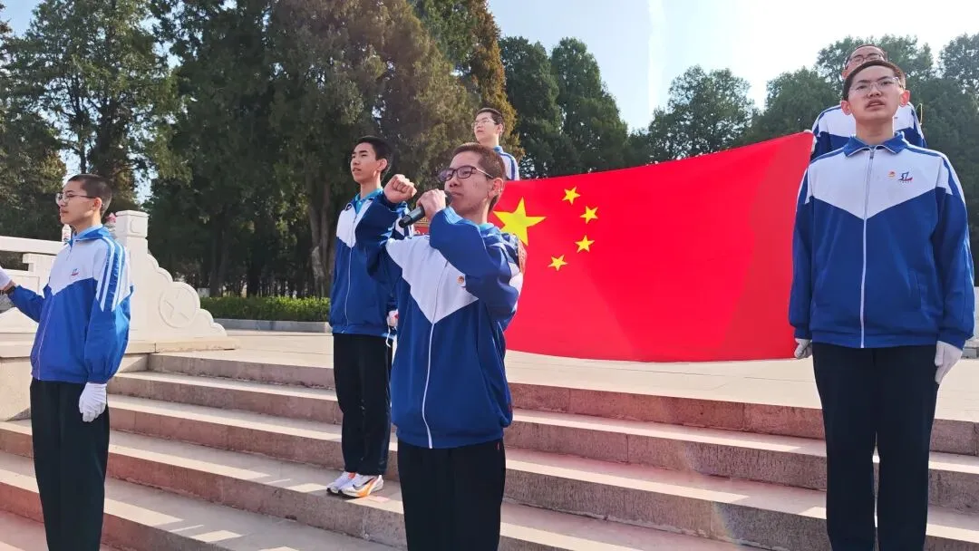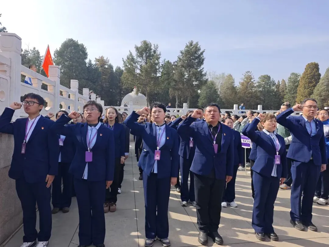 在领誓人带领下,全体师生高举右拳,庄严宣誓。铿锵誓言响彻陵园,激荡人心,字字句句彰显铭记历史、不负韶华、传承英烈精神、矢志报效祖国的坚定信念。