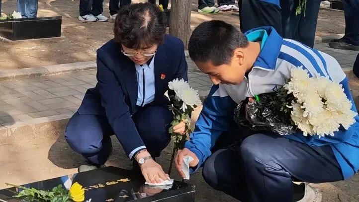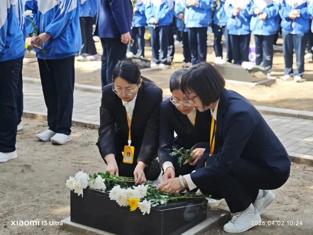 仪式最后,同学们有序移步烈士墓前,轻轻献上鲜花,深深鞠躬致意。一束束鲜花寄托哀思,一次次鞠躬彰显敬意,以最朴素的方式告慰英烈忠魂。