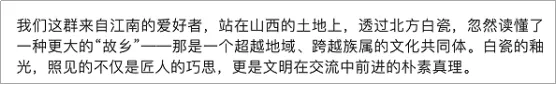 来自上海的网友“博创”参观后感慨:“我们这群来自江南的爱好者,站在山西的土地上,透过北方白瓷,忽然读懂了一种更大的‘故乡’——那是一个超越地域、跨越族属的文化共同体。” 网友“摇椅里的睡猫”也极力推荐:“想再去刷一遍山西博物院‘北白’展!诚心推荐,慢观细赏,必庆幸这一场瓷韵相逢。”