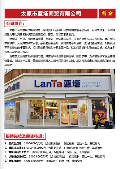 太原市蓝塔商贸有限公司作为山西烘焙行业的标杆企业,不仅为毕业生提供稳定就业机会,更通过技术岗位实践助力技能提升。对于山西冶金技师学院毕业生而言,这里是一个将专业技术应用于服务行业、实现职业发展的优质平台。欢迎有志于技术应用与服务创新的毕业生加入,共同书写烘焙行业技术赋能的新篇章。