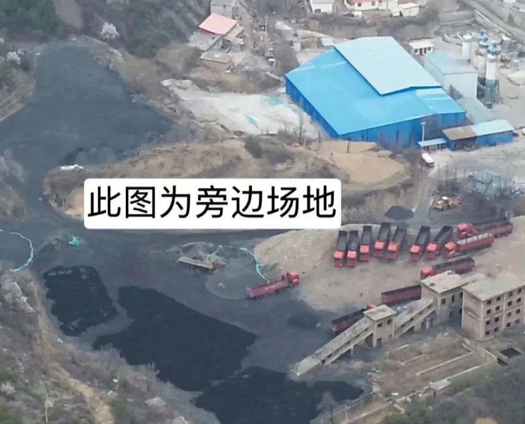 在厂区旁边的另一处场地,煤泥同样以露天方式堆放、晾晒,场地内无围挡、无覆盖、无喷淋设施,煤泥在堆放和晾晒过程中,粉尘和煤泥水易直接扩散、外渗,对周边空气、土壤和水体造成潜在污染风险。