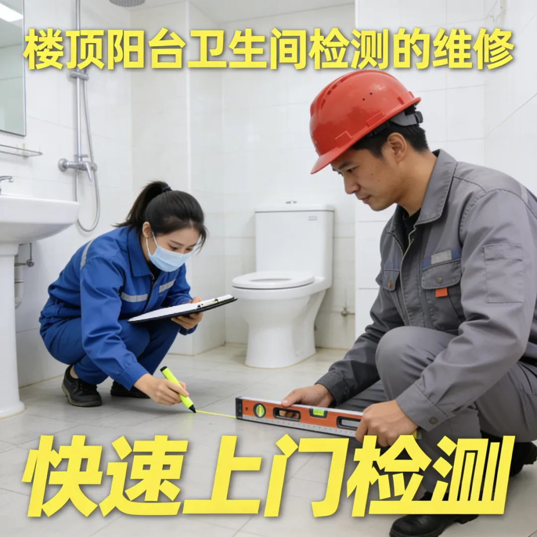[1维修防水补漏服务,针对卫生间、屋顶、厨卫、外墙、地下室、阳台,露台等全场景漏水问题,拒绝盲目施工——依托专业检测设备(如红外检测仪、打压设备)精准定位漏点,科学分析渗漏成因,再提供定制化维修方案,费用明细清晰透明,确认后施工。]