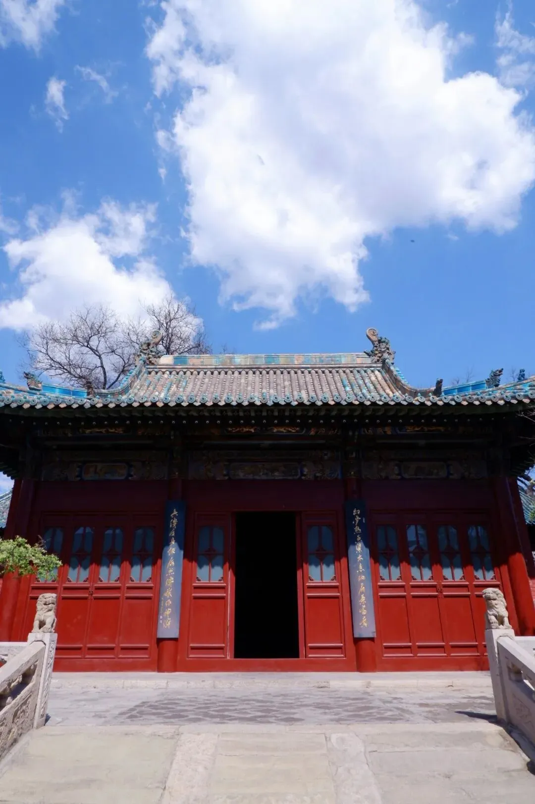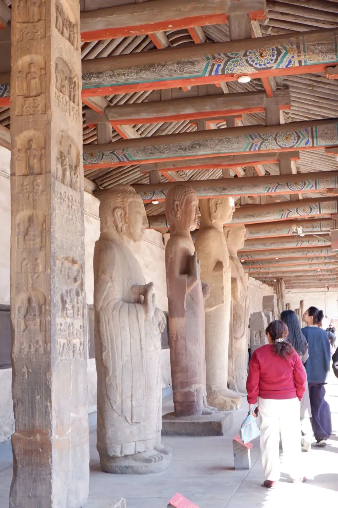 接着往里走,开始真正欣赏古建之美。看过石狮、石虎,沿着白玉台阶,登殿进入,看着壁画上的人物在对话。