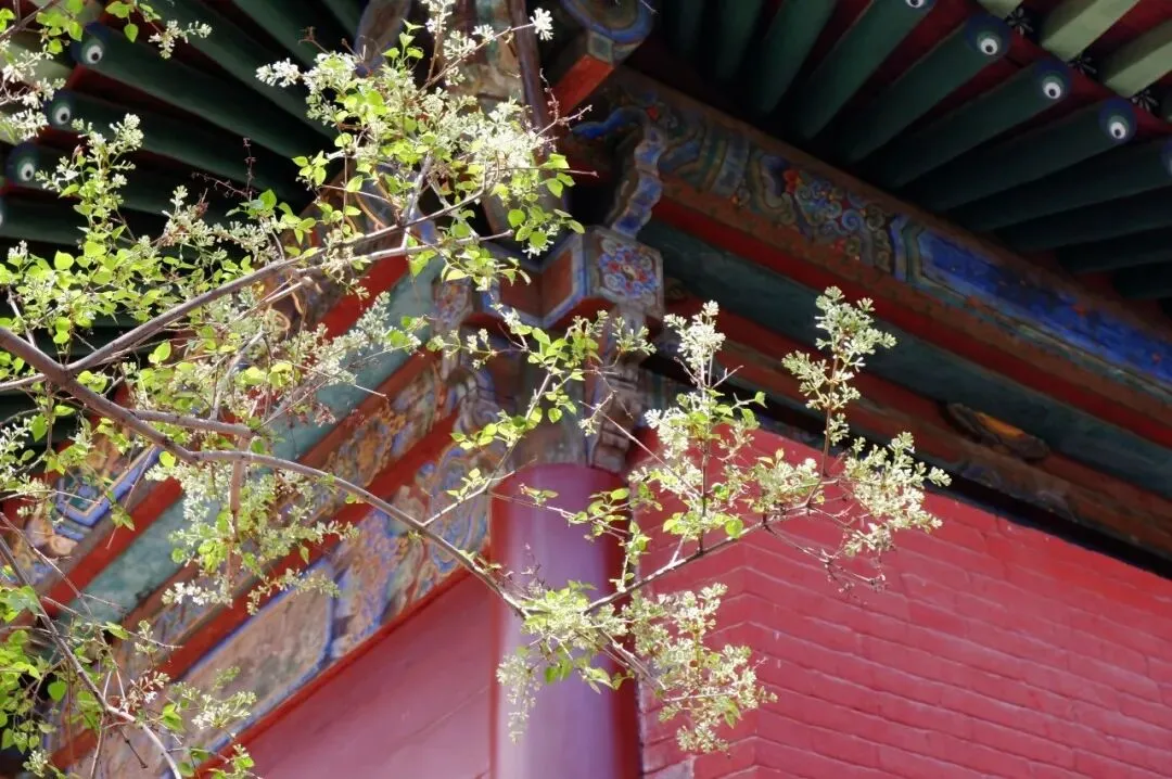 可惜脚伤,我没去楼上回廊,也没去假山上看关公像。走累了,就坐在院子里。临近中午,游客们都张罗着去附近吃美食,我一个人坐在院子里晒着太阳,四下里安静着,只有这亭台楼阁和春生的植物,和我对坐着。这个时节的花,还未全开放。光照多的地方开得多一点,阴翳处的花苞还显着嫩色。然而正是这种零零星星未开放的感觉,和古建的厚重绵长配在一起,竟然让人欣喜。好像得以同时看得到瞬间和和永恒,柔软和坚硬,古人和今人,故事和现实。这些想法就突然扑进我脑子里,一时失语。