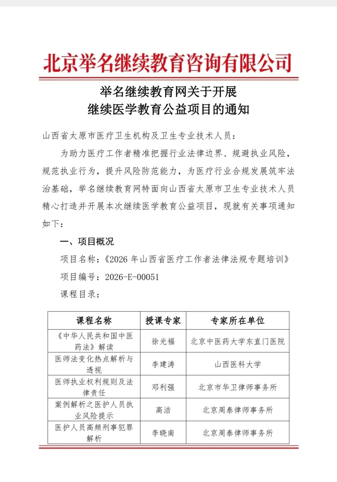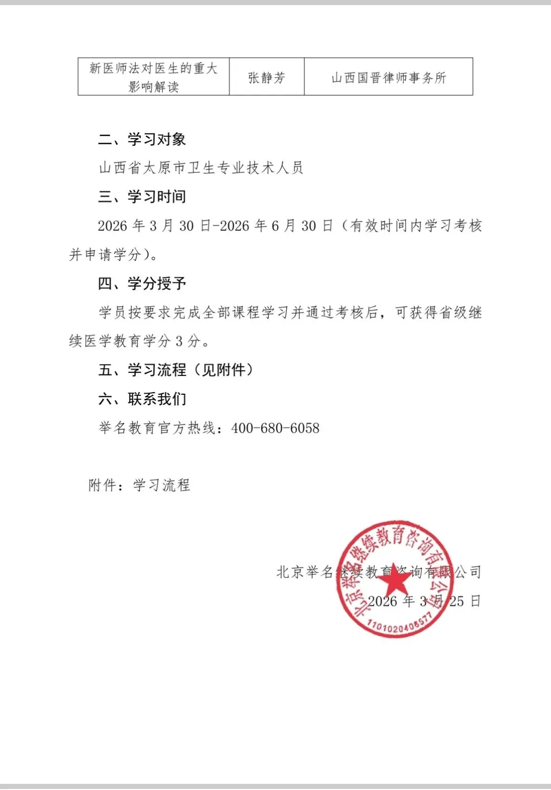 线上免费3分举名教育2026年山西省医疗工作者法律法规专题培训