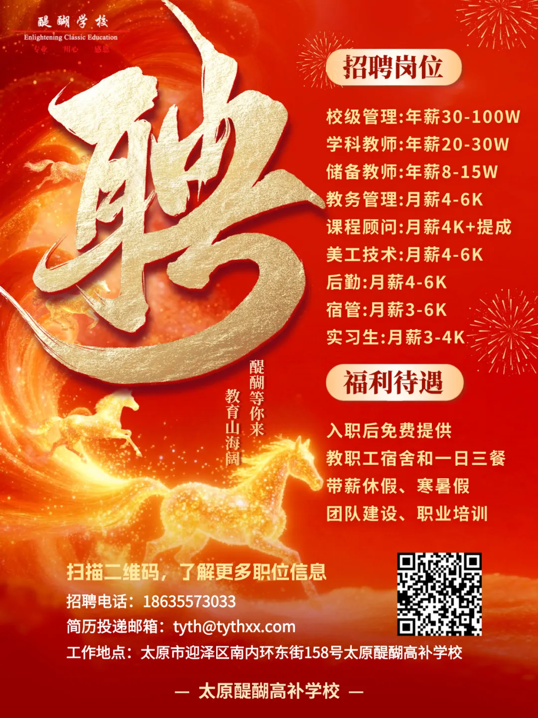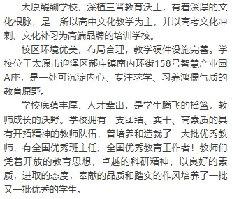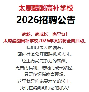 学校地址:太原市迎泽区南内环东街智慧产业园A座太原醍醐高补学校(东山校区)