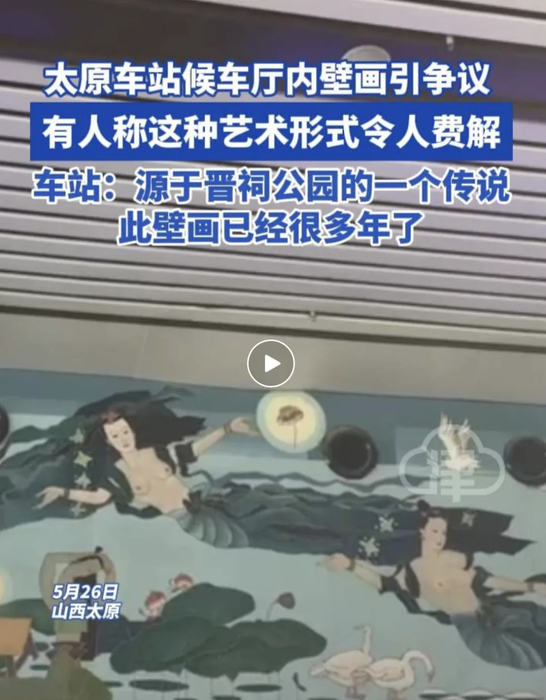 据媒体报道,该名女子表示,当天她在太原车站候车厅等车时,偶然抬头看到了上面的壁画,但她越看越不对劲,用相机放大才看清楚,壁画上面的女性,都没有穿着上衣。她认为,如此大张旗鼓地将隐私部位裸露在外面并不妥当。
