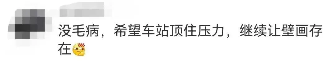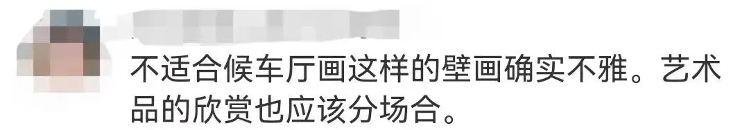 “孩子看了怎么想?这是车站。”该女子表示,在她看来,这是车站,并不是图书馆和艺术馆,完全可以进行正常的宣传,更何况这种壁画本就没有多美,很担心让更多的小孩子看到,错以为暴露、穿得少就是对的,并不是什么都是艺术和文化。