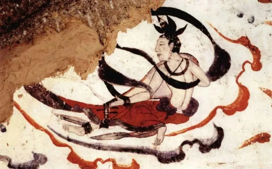 进入西魏,飞天形象逐渐成熟,也与道教文化相结合。同时开始出现裸体飞天的形象。